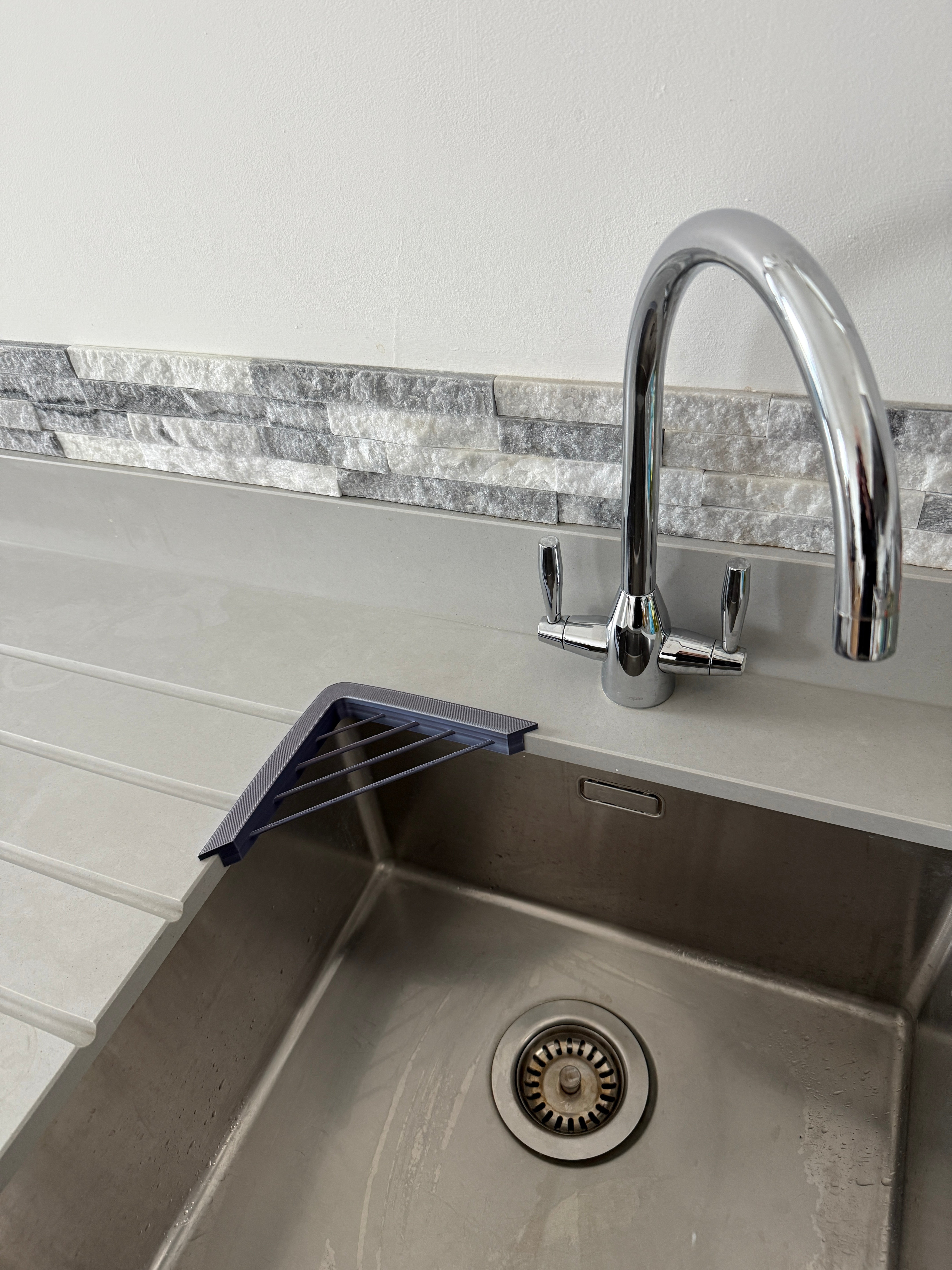 Ta suszarka została zaprojektowana tak, aby idealnie pasowała do rogu zlewu kuchennego i oferuje praktyczne rozwiązanie do przechowywania i suszenia ścierek i gąbek kuchennych. Stojak zapewnia, że nadmiar wody kapie bezpośrednio do zlewu, co pomaga utrzymać suchość powierzchni kuchennych i brak kałuż. Jest to przydatne narzędzie kuchenne, które przyczynia się do bardziej zorganizowanego i higienicznego środowiska w kuchni. Niezależnie od tego, czy chodzi o codzienne zmywanie, czy sprzątanie, ten stojak zapewnia dedykowane miejsce do wietrzenia narzędzi do zmywania.