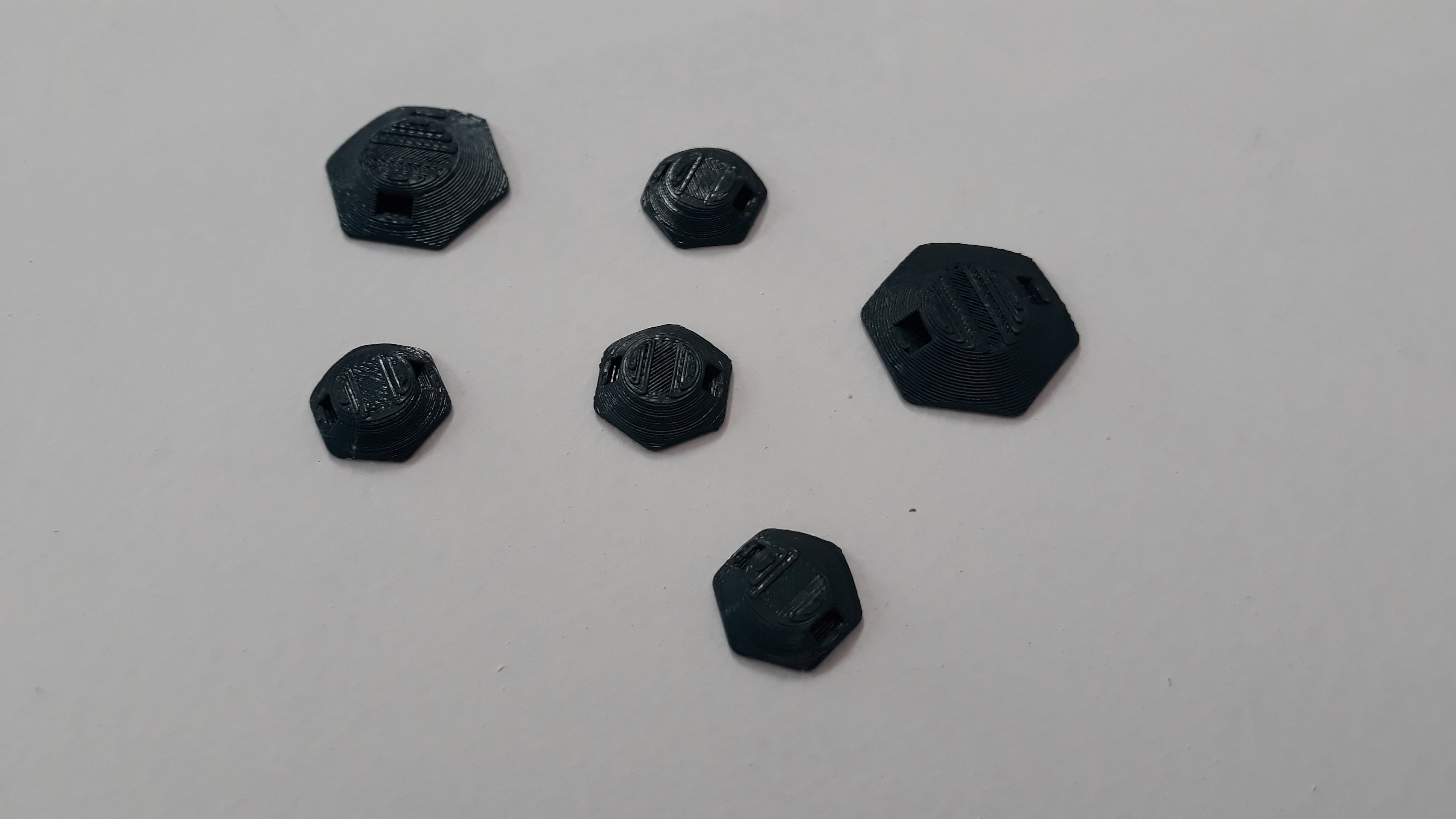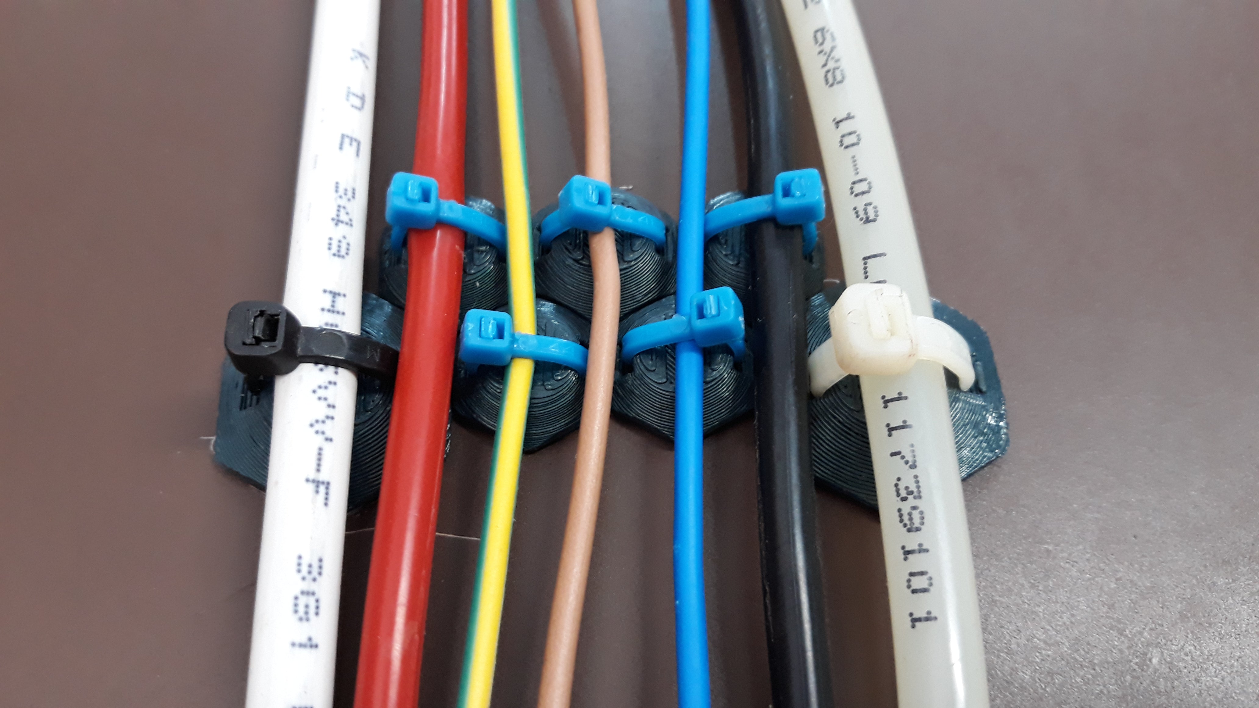 Eksagonalne klipsy kablowe do organizacji kabli i rur. Klipsy można wkładać od góry lub z boku i mocować za pomocą taśmy dwustronnej, kleju, kleju na gorąco itp. Dostępne w dwóch różnych rozmiarach (mały, duży) i obsługują różne rozmiary opasek kablowych. Mogą być drukowane na dowolnym materiale, który spełnia Twoje potrzeby, a wiele jednostek może być drukowanych jednocześnie. Cena za sztukę waha się między 0,1-0,2 €/$ w zależności od materiału i rozmiaru.