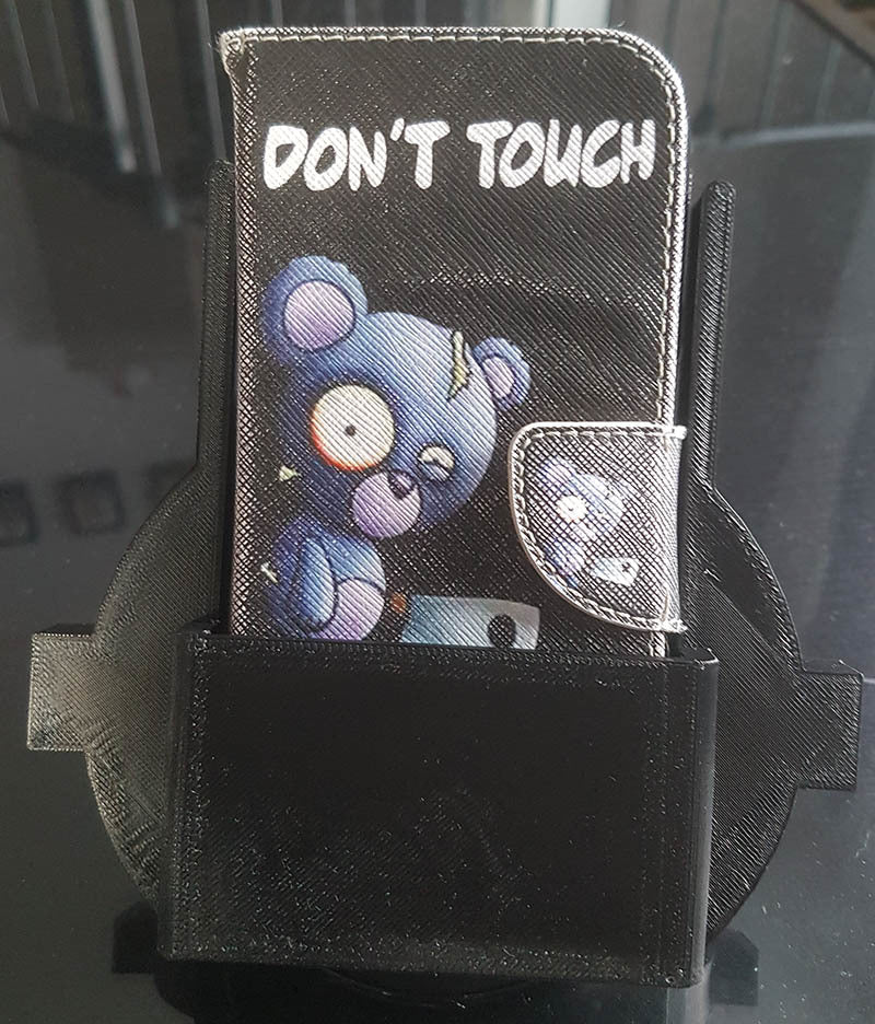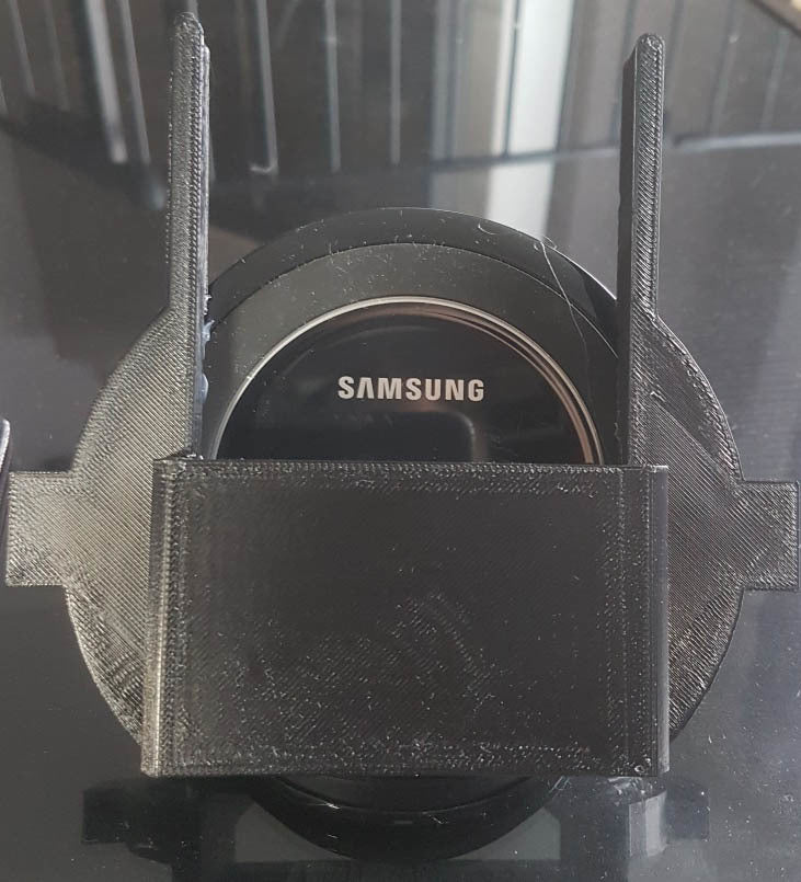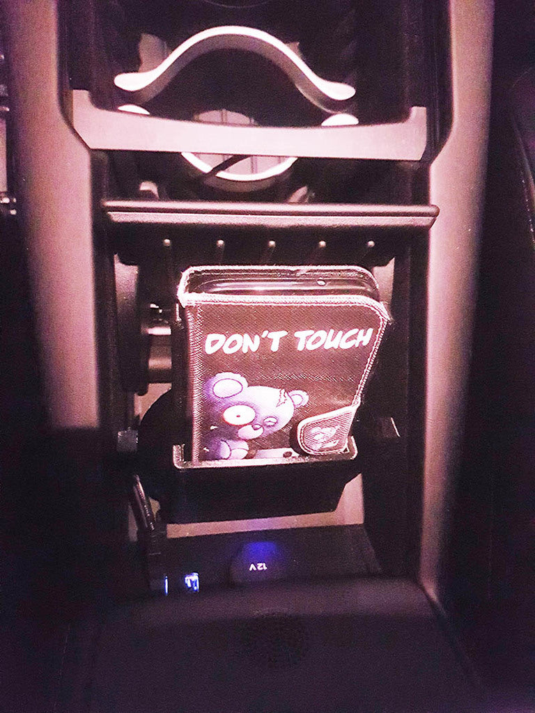 Uchwyt na ładowarkę bezprzewodową Qi do Tesli Model S do telefonów Samsung. To urządzenie działa jak prosty uchwyt na telefon, który można przymocować do płyty ładującej Qi. Został zaprojektowany tak, aby idealnie pasował do konsoli Tesla Model S. Jest specjalnie kompatybilny z ładowarką "Samsung Fast Charge", ale można go łatwo dostosować do innych płyt ładujących Qi.
