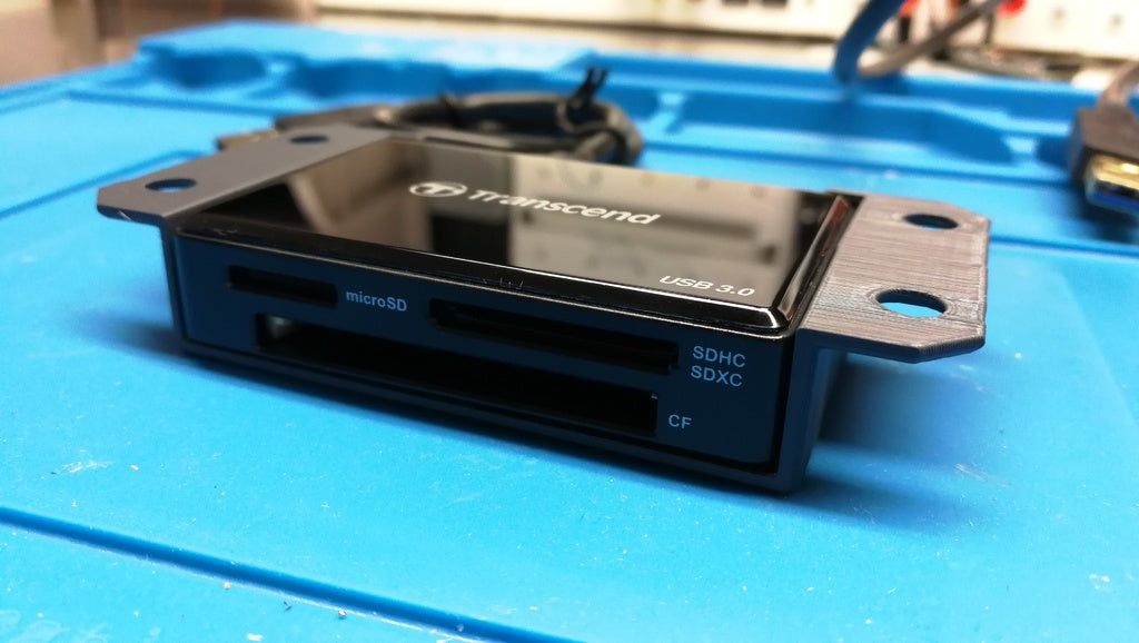 Uchwyt został zaprojektowany tak, aby pasował do modeli o wymiarach zewnętrznych podobnych do Transcend TS-RDF8K, a także oczekuje się, że większość nowszych wersji podobnych czytników kart będzie pasować bez problemów. Taka konstrukcja zapewnia bezpieczne przymocowanie czytnika kart SD i zawsze pod ręką, gdy go potrzebujesz, bez zbędnego zagracania biurka.