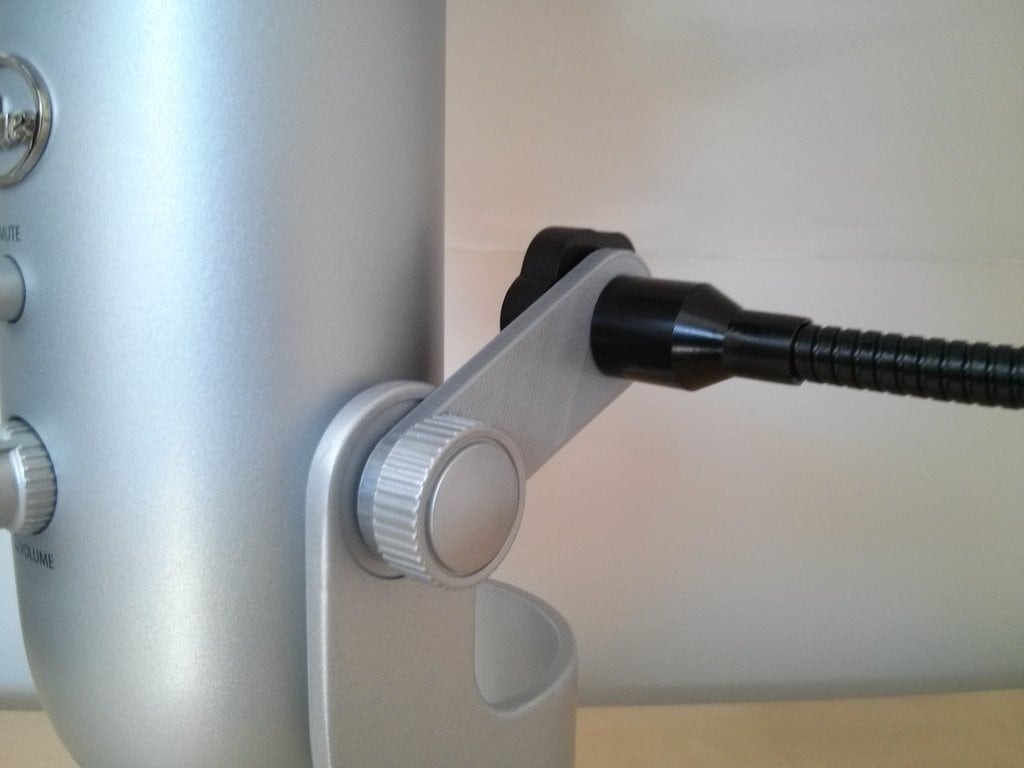 Uchwyt do filtra pop mikrofonu Blue Yeti ułatwia zamontowanie standardowego filtra pop na mikrofonie biurkowym Blue Yeti. Filtry pop są przeznaczone do przykręcania do normalnego statywu mikrofonowego za pomocą metalowego wspornika. Ten wspornik zastępuje istniejący i umożliwia zamontowanie filtra pop bezpośrednio na mikrofonie Blue Yeti. Wspornik można łatwo przymocować, przykręcając go. Kąt można również regulować, poluzowując śrubę.