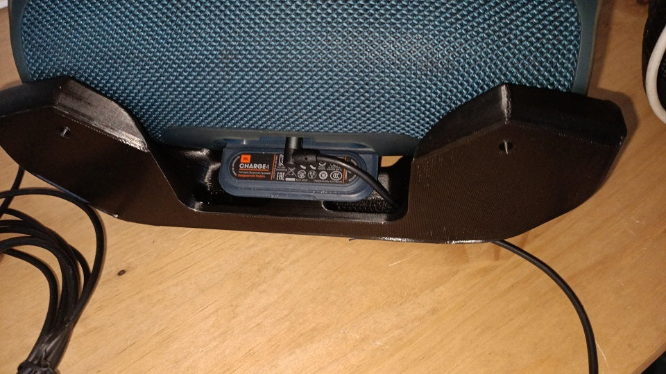 To wygodny uchwyt do głośnika JBL Charge 4. Wspornik można łatwo zamontować na stole, biurku, a nawet na ścianie za pomocą dwóch śrub. Z tyłu znajdują się również dwa przepusty kablowe, dzięki czemu można łatwo podłączyć kabel ładujący i kabel USB. Uporządkuj swoją przestrzeń dzięki temu sprytnemu rozwiązaniu.