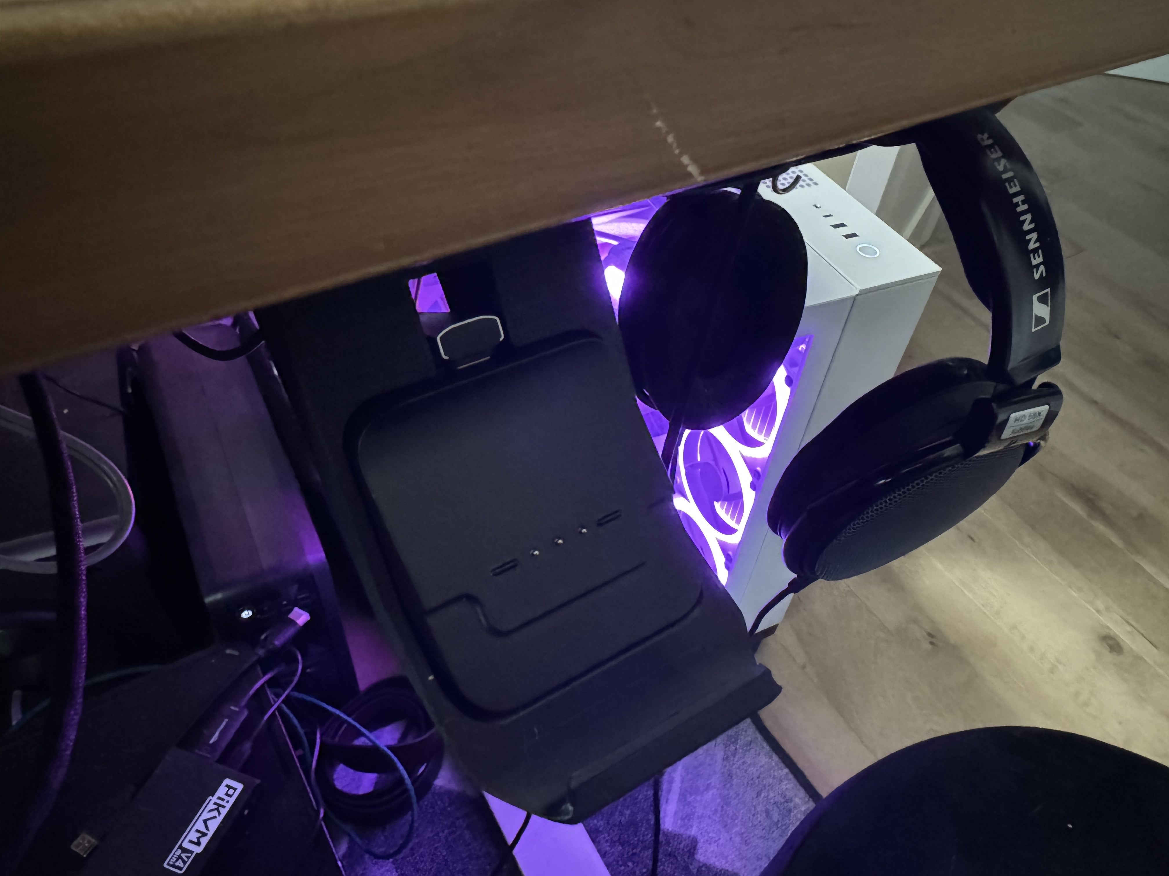 - Dyskretny montaż pod biurkiem zwalnia cenną przestrzeń i tworzy uporządkowane stanowisko do gier.