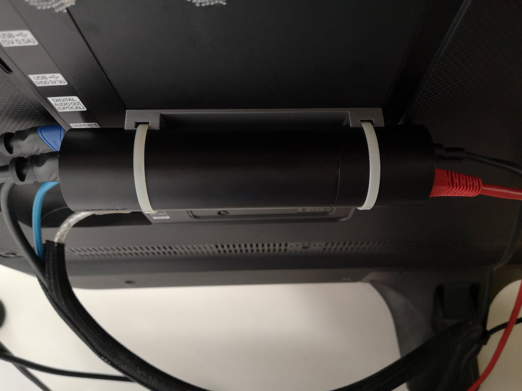 Dla optymalnej trwałości i odporności na ciepło emitowane przez urządzenie i telewizor, zaleca się stosowanie materiału odpornego na ciepło, takiego jak PETG, co zapewnia długotrwałą funkcjonalność i stabilność uchwytu.
