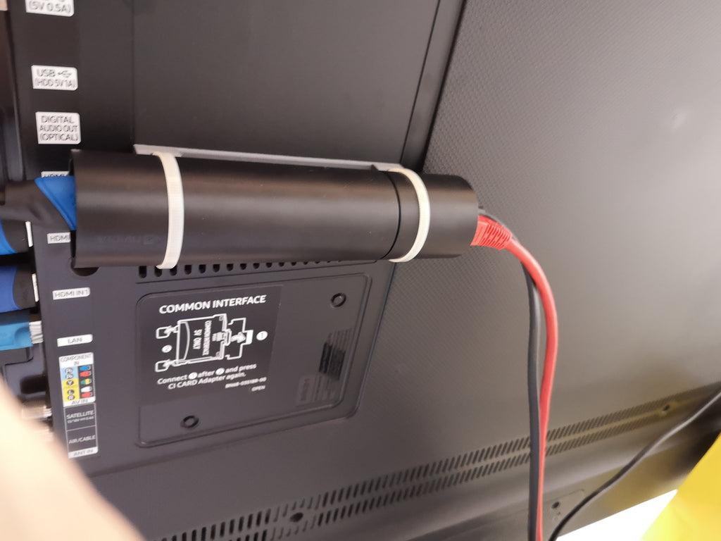 Uchwyt skutecznie pomaga w zarządzaniu kablami, minimalizując bałagan i przyczyniając się do bardziej zorganizowanej przestrzeni wokół telewizora. Zapewnia, że Twój NVidia Shield TV pozostaje bezpiecznie na miejscu, a jednocześnie jest łatwo dostępny, gdy go potrzebujesz.