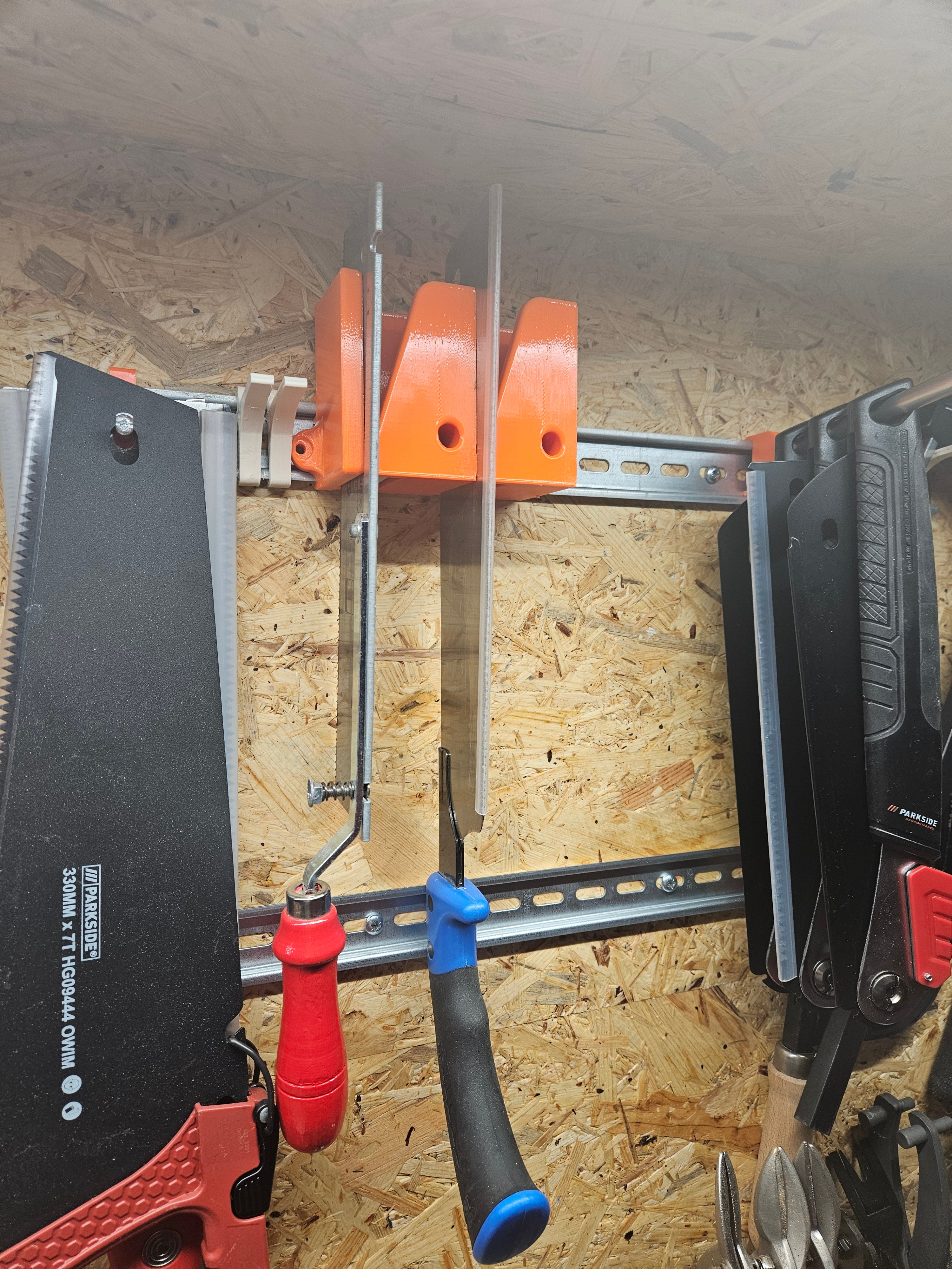 - Efektywne przechowywanie pił na systemach szyn DIN.