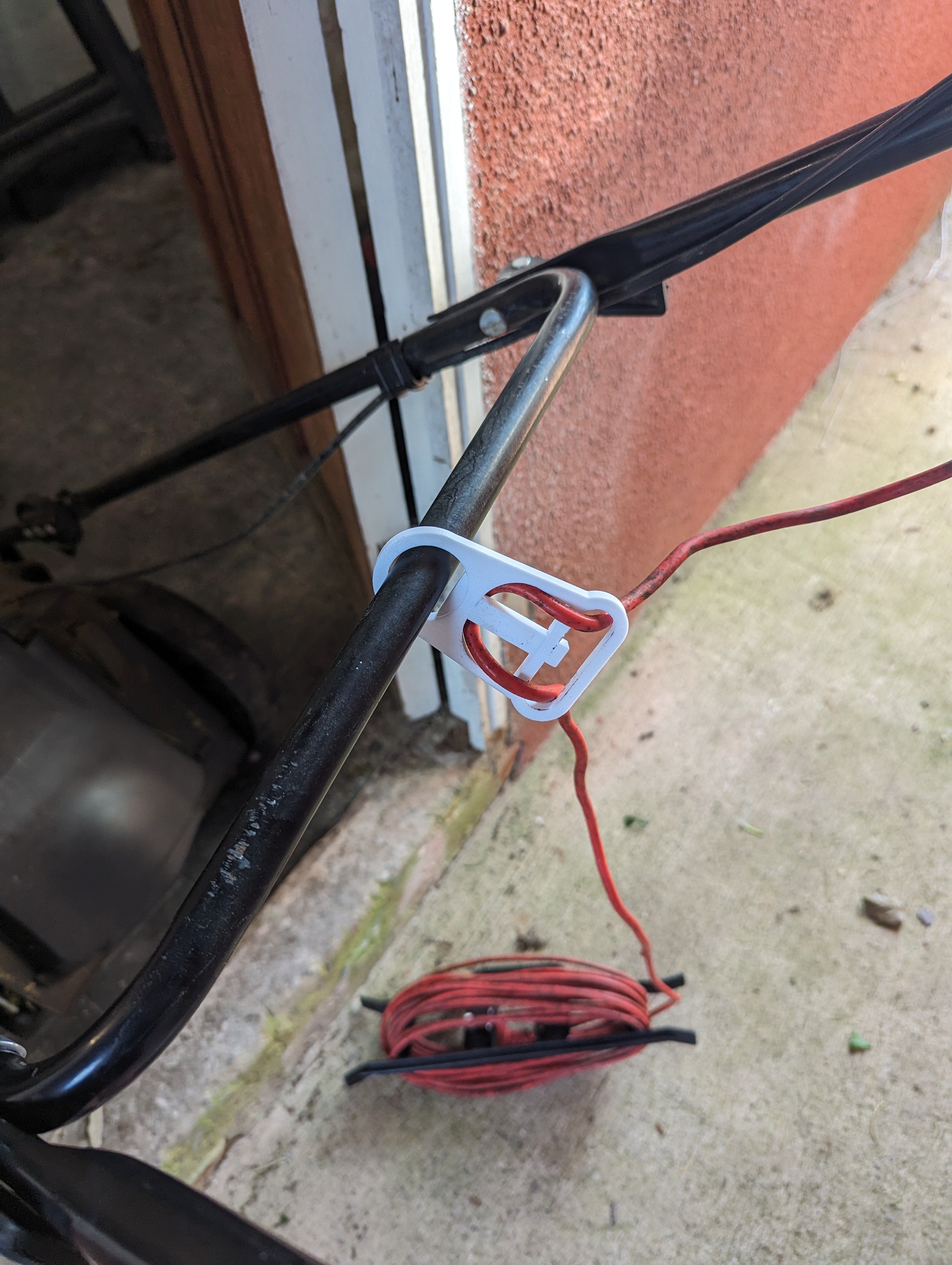 - Zaprojektowany jako trwały zamiennik oryginalnego haka na kabel do elektrycznych kosiarek Aldi.