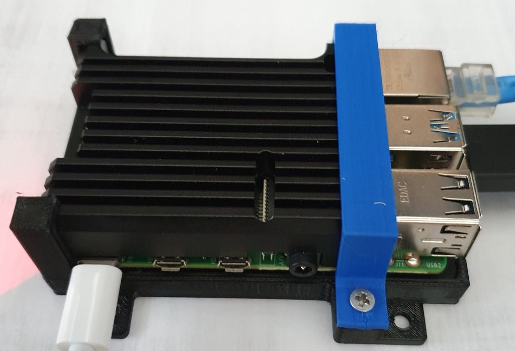 - Zaprojektowany do bezpiecznego montażu Raspberry Pi 4 z obudową chłodzącą.