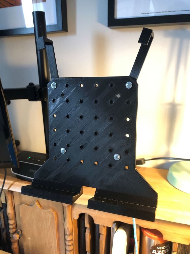 Prosty i inteligentny uchwyt do montażu VESA do iPada i podobnych tabletów, który ułatwia przymocowanie tabletu do ramienia monitora z uchwytem VESA. Zapewnia to dodatkowe miejsce na biurku i bezpiecznie utrzymuje iPada/tablet na miejscu, umożliwiając jednocześnie regulację kąta w dowolny sposób. Uchwyt ma również centralny kanał na kabel ładujący, co ułatwia ładowanie, gdy iPad/tablet jest w trybie portretowym.