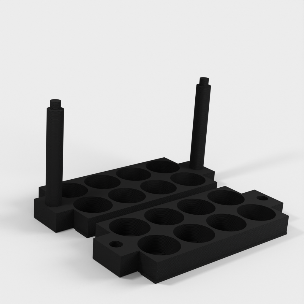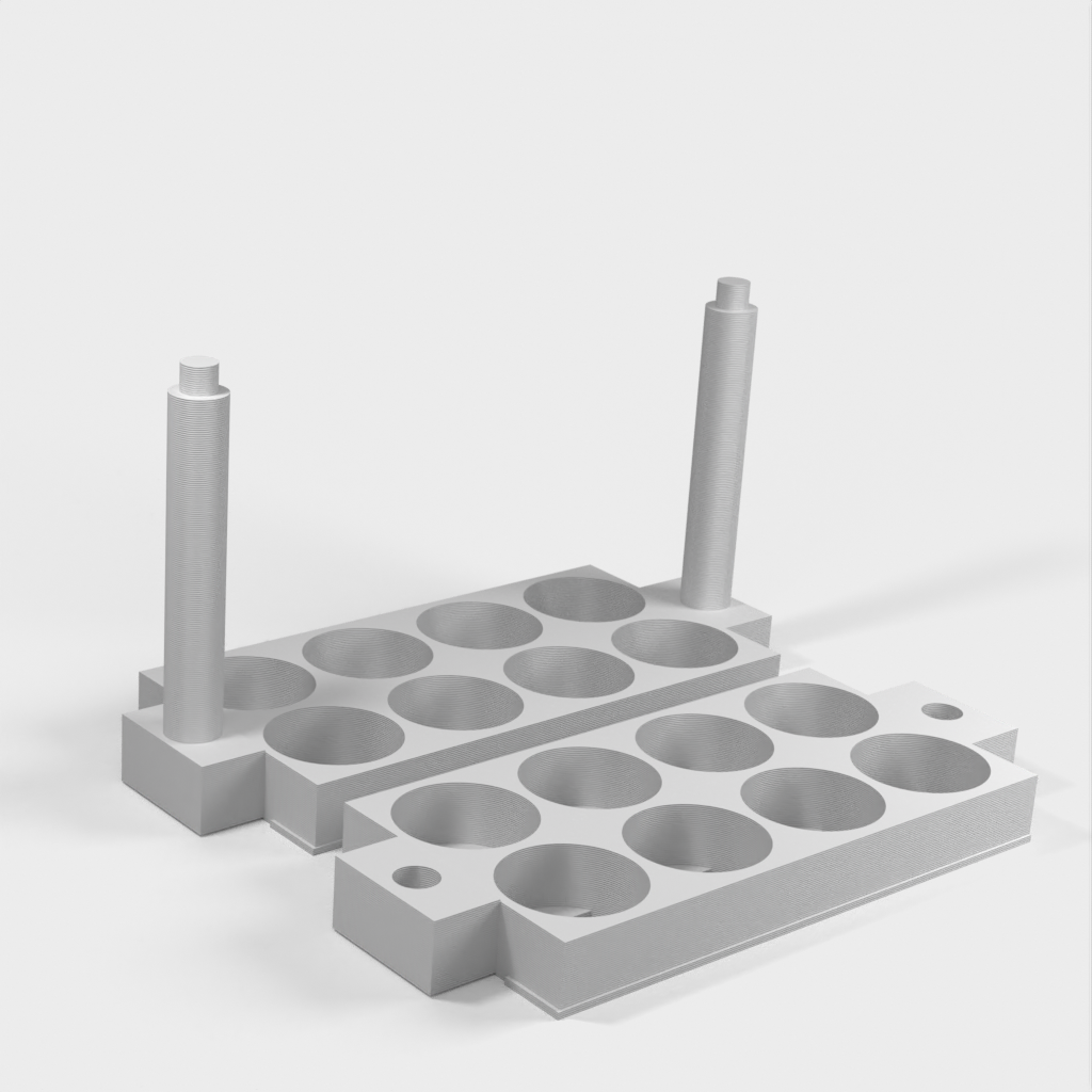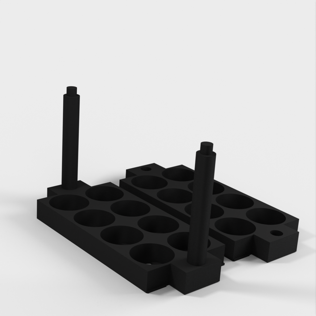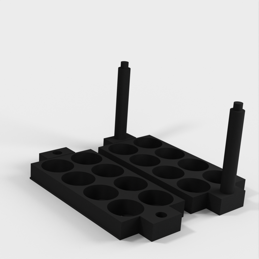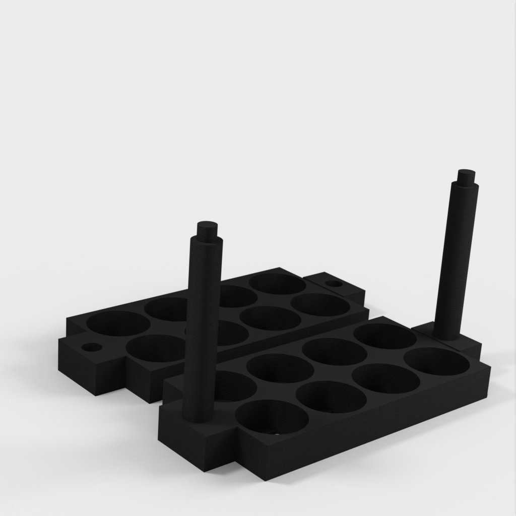 Uchwyt na baterie 18650 został zaprojektowany tak, aby baterie 18650 były uporządkowane i łatwo dostępne. Ten uchwyt na baterie pomaga utrzymać porządek i organizację w warsztacie, szopie lub pojeździe roboczym. Uchwyt można łatwo zamontować na ścianie za pomocą śrub.