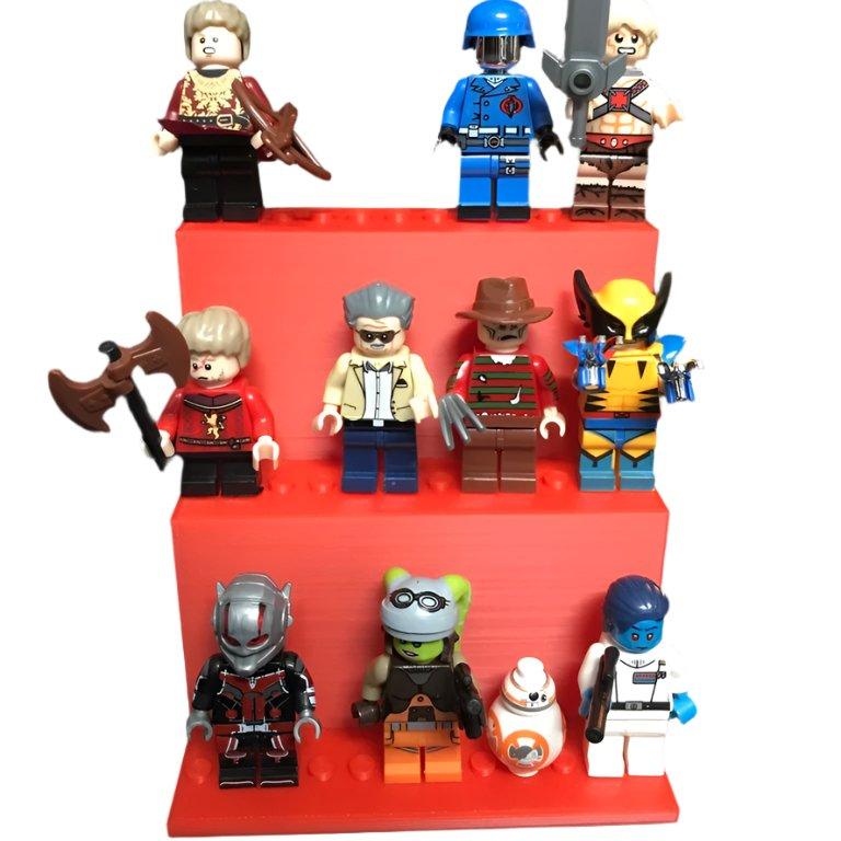 To prosty, trzypoziomowy stojak na minifigurki, zaprojektowany tak, aby idealnie pasował do minifigurek Lego. Dzięki temu uchwytowi Twoja kolekcja minifigurek Lego będzie uporządkowana i łatwo dostępna.
