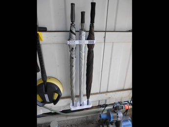 Efektywnie przechowuj swoje parasole za pomocą tego ściennego uchwytu na parasole, który pomieści do trzech parasoli. Projekt zawiera dwie różne opcje dla podstawy mocującej; jedna z odpływem na podłogę i jedna z zamkniętym dnem, która zbiera krople z mokrych parasoli. Ta funkcjonalność ułatwia utrzymanie obszaru wokół uchwytu w suchości i porządku.