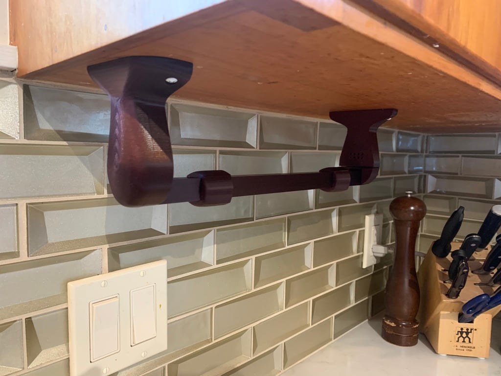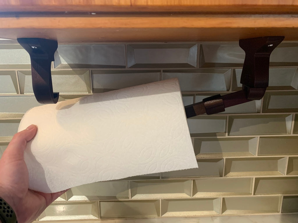 Uchwyt jest zoptymalizowany do przechowywania ręczników papierowych o długości 11 cali i średnicy 6 cali, dzięki czemu możesz mieć pewność dobrego dopasowania. Materiał, Prusa PLA w tajemniczym brązowym odcieniu, zapewnia wspaniałą estetykę, która dzięki swojemu drewnopodobnemu efektowi i zmieniającym się kolorom w świetle, dodaje stylowego akcentu pomieszczeniu.