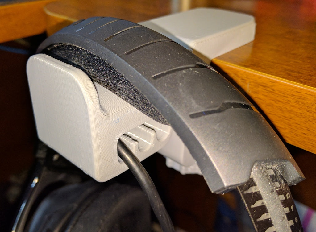 Uchwyt został zaprojektowany tak, aby pomieścić różne rozmiary zestawów słuchawkowych i jest dostępny w dwóch wariantach: model standardowy do pałąków o szerokości do 45 mm oraz wersja szersza, która pasuje do pałąków o szerokości do 55 mm. Jego głębokie rowki utrzymują porządek w kablach i zapobiegają ich splątaniu, przyczyniając się do uporządkowanej konfiguracji.