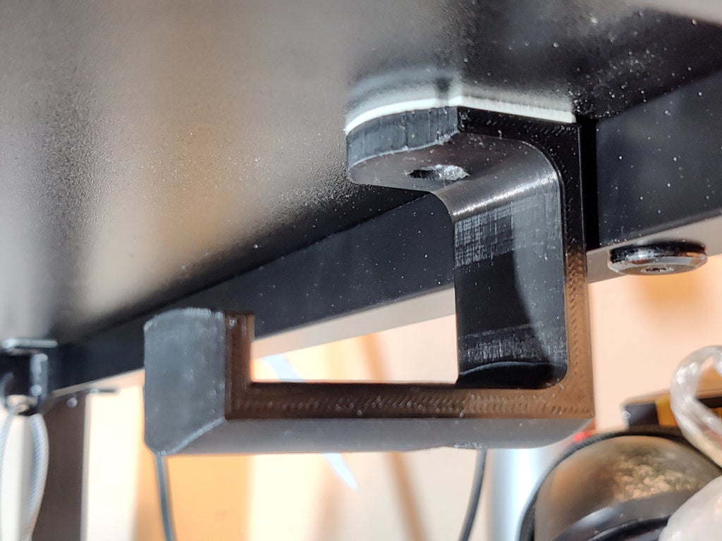To jest uchwyt na słuchawki pod biurko. Montaż odbywa się za pomocą śruby frezowanej nr 8 lub nr 10, co czyni go łatwym i elastycznym rozwiązaniem do przechowywania słuchawek pod biurkiem. Utrzymuje słuchawki bezpiecznie i wygodnie przechowywane, gdy nie są używane.