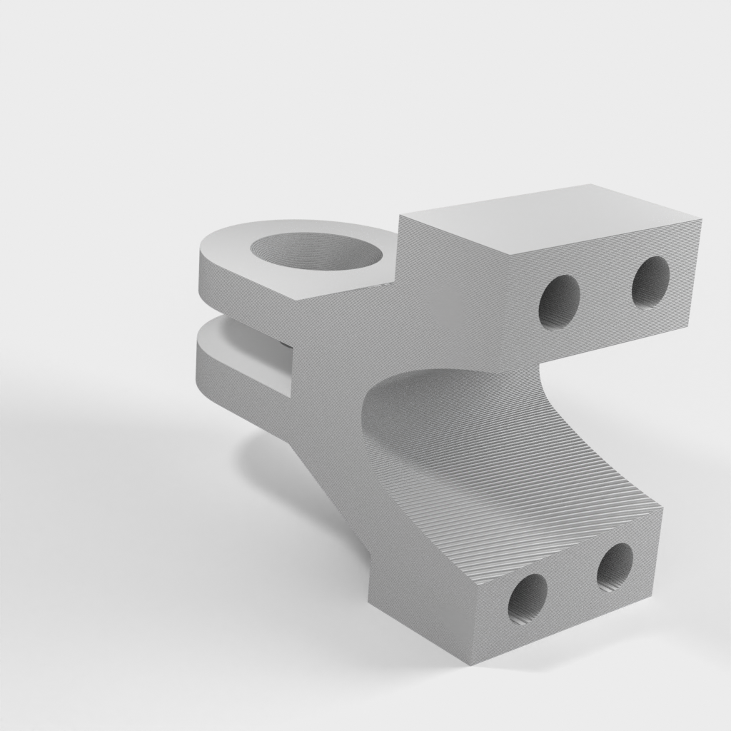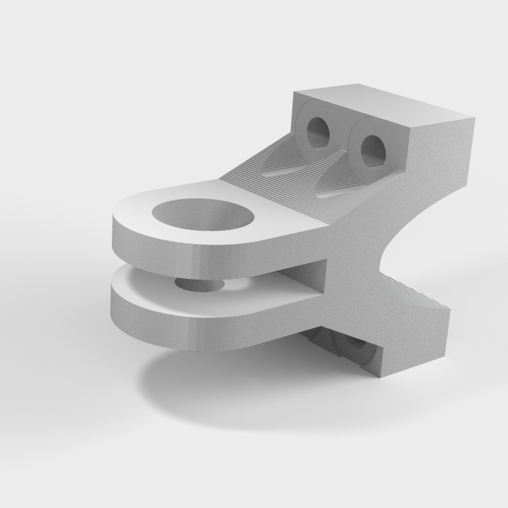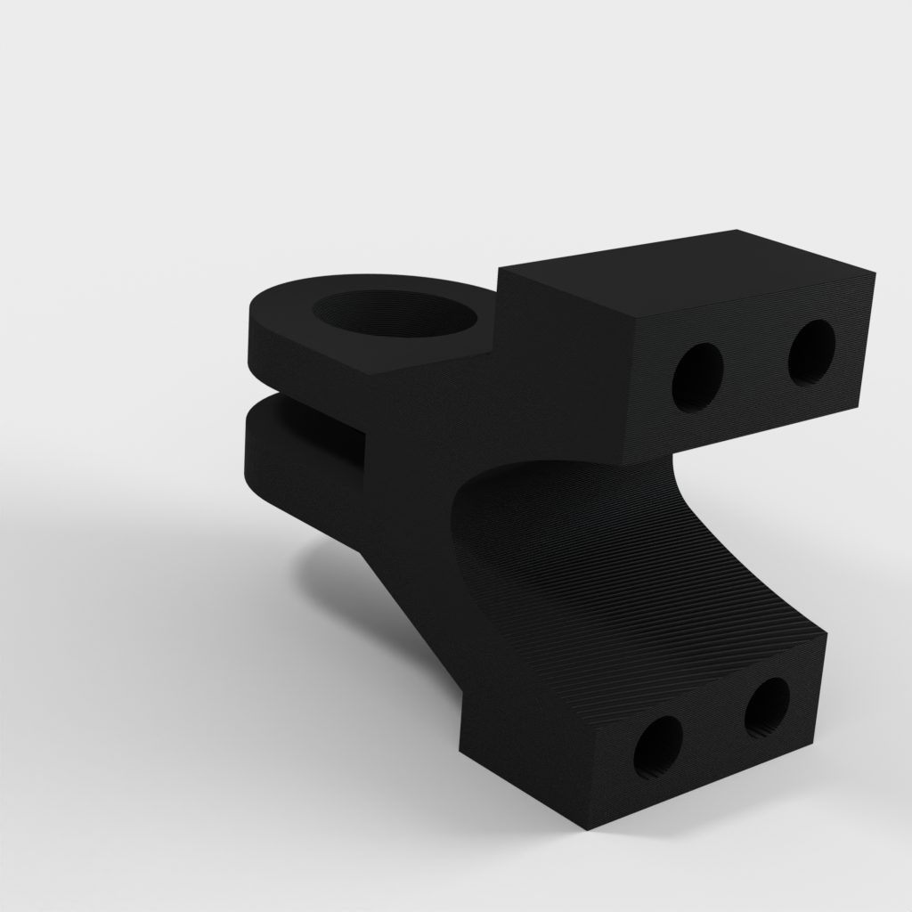 Część ramienia (mount-3.stl) należy podgrzać pistoletem na gorące powietrze lub suszarką do włosów, aby stała się plastyczna i umożliwiła optymalne umieszczenie kamery. Zapewnia to lepszą stabilność ramienia, ponieważ w przeciwnym razie nie można byłoby go wydrukować na płasko, a warstwy nie byłyby ciągłe.