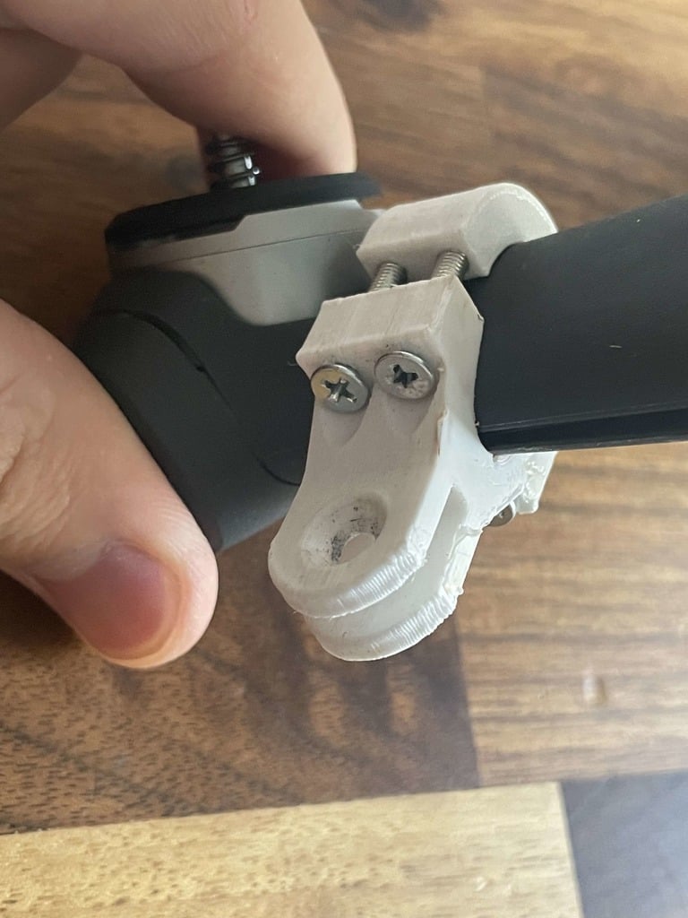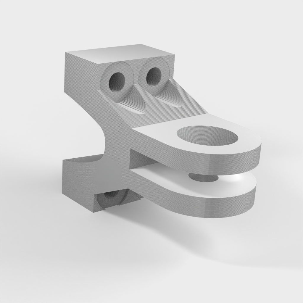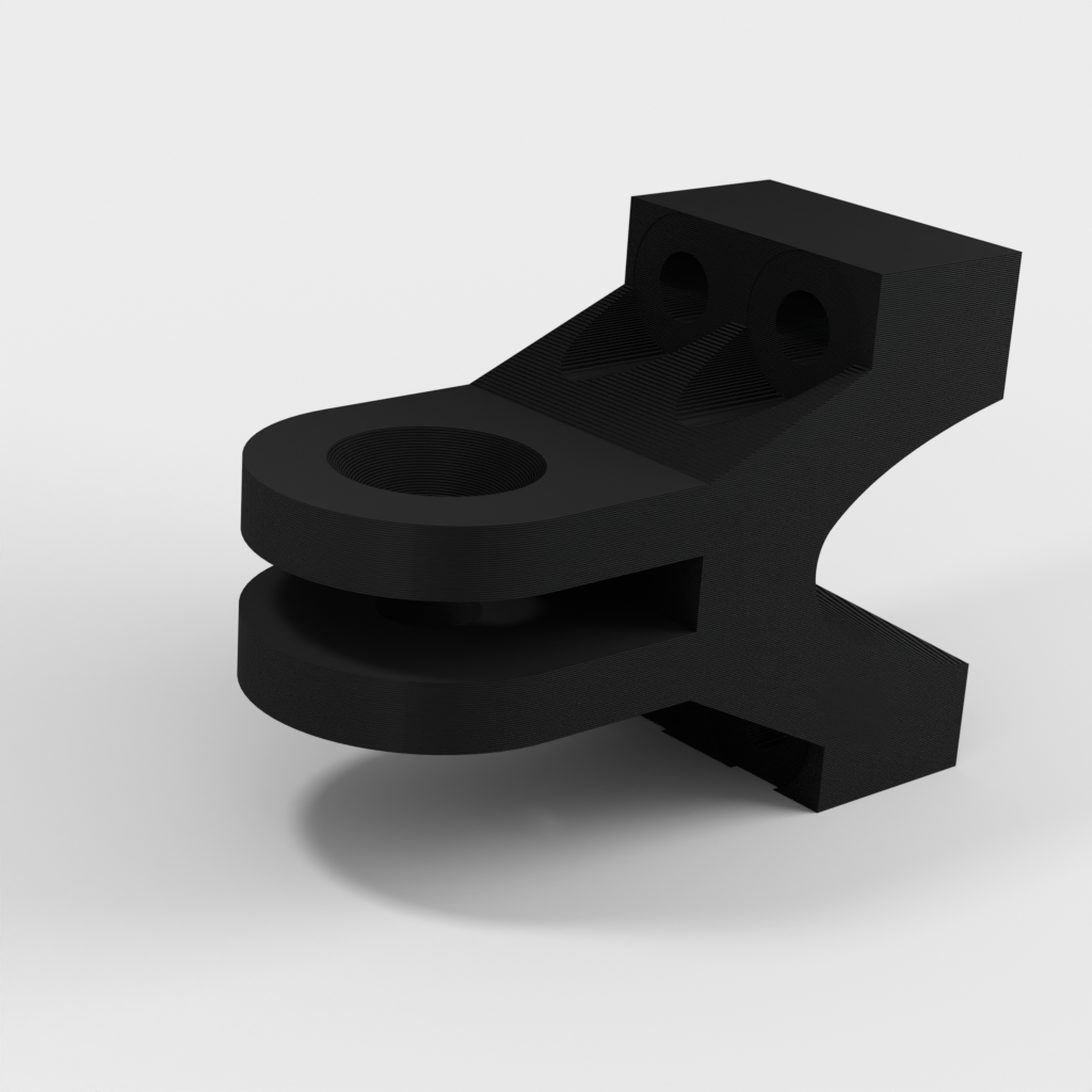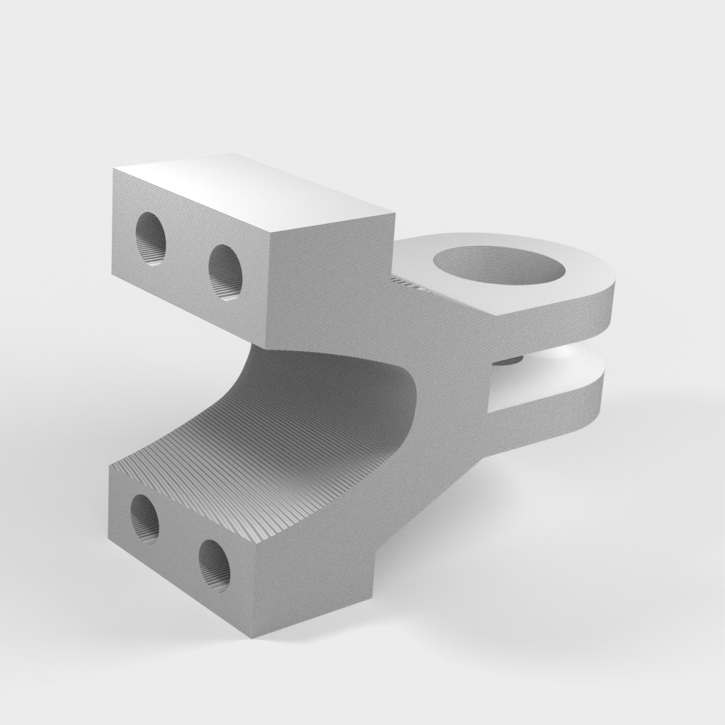 Część ramienia (mount-3.stl) należy podgrzać pistoletem na gorące powietrze lub suszarką do włosów, aby stała się plastyczna i umożliwiła optymalne umieszczenie kamery. Zapewnia to lepszą stabilność ramienia, ponieważ w przeciwnym razie nie można byłoby go wydrukować na płasko, a warstwy nie byłyby ciągłe.