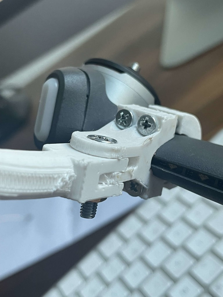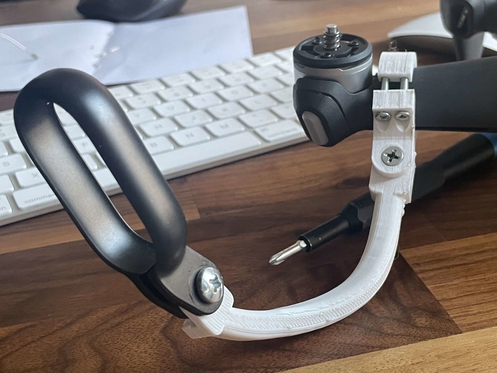 Jest to uchwyt na ramię przeznaczony do tworzenia filmów z perspektywy trzeciej osoby za pomocą kamery Insta 360 GO na dronie DJI FPV. Mocuje się go z tyłu lewego ramienia drona (lub prawego, jeśli jest odwrócony) za pomocą czterech śrub M3 o długości 20 mm. Sam uchwyt wymaga dodatkowej śruby M4 o długości 16 mm i nakrętki, aby móc się obracać, a także śruby M5 o długości 20 mm i nakrętki do mocowania Insta 360 GO2 GoPro.