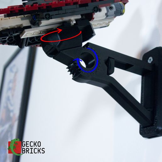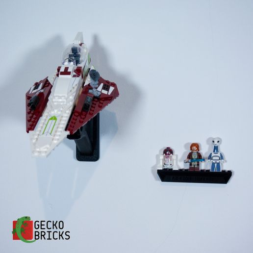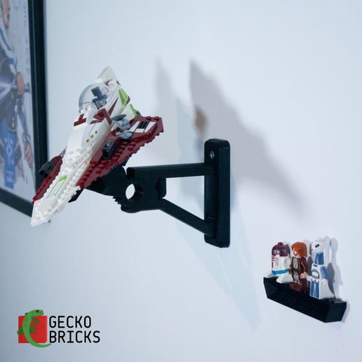 Ten regulowany wspornik ścienny pozwala na eksponowanie Twojego myśliwca Star Wars pod różnymi kątami. Wspornik jest zaprojektowany z myślą o łatwym montażu i szybkim zdejmowaniu modelu. Dołączony jest oddzielny uchwyt na minifigurki, który jest bezpiecznie i delikatnie mocowany za pomocą paska 3M.