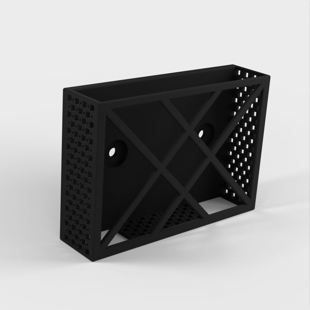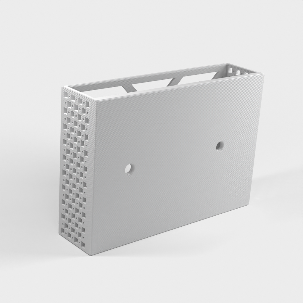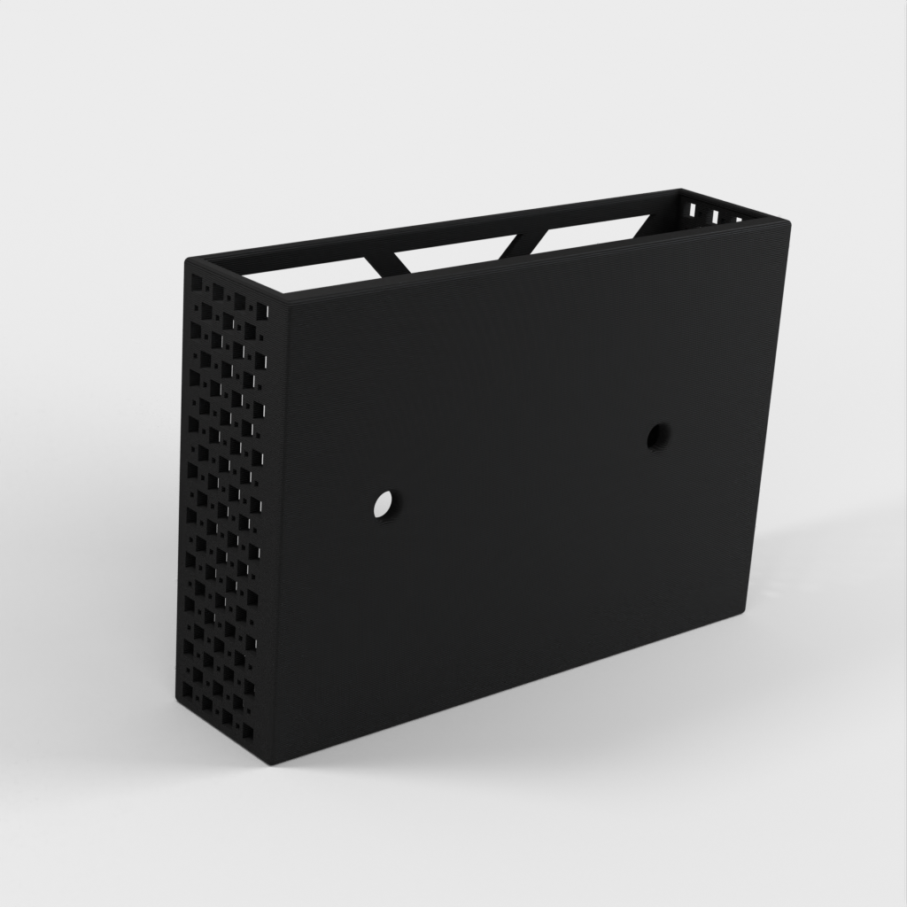 Uchwyt ścienny stworzony specjalnie dla Ubiquiti EdgeRouter X jest przeznaczony do korzystania z POE na eth0. Otwory po bokach zapewniają cyrkulację powietrza i zapobiegają przegrzaniu. W zestawie znajdują się dodatkowe pokrętła, które pomagają utrzymać EdgeRouter X na miejscu, a także otwory z tyłu umożliwiające dostęp do zasilania, uziemienia i resetowania. Krawędzie są przycięte i wypełnione, co zapewnia lepszą obsługę i ładniejszy wygląd.