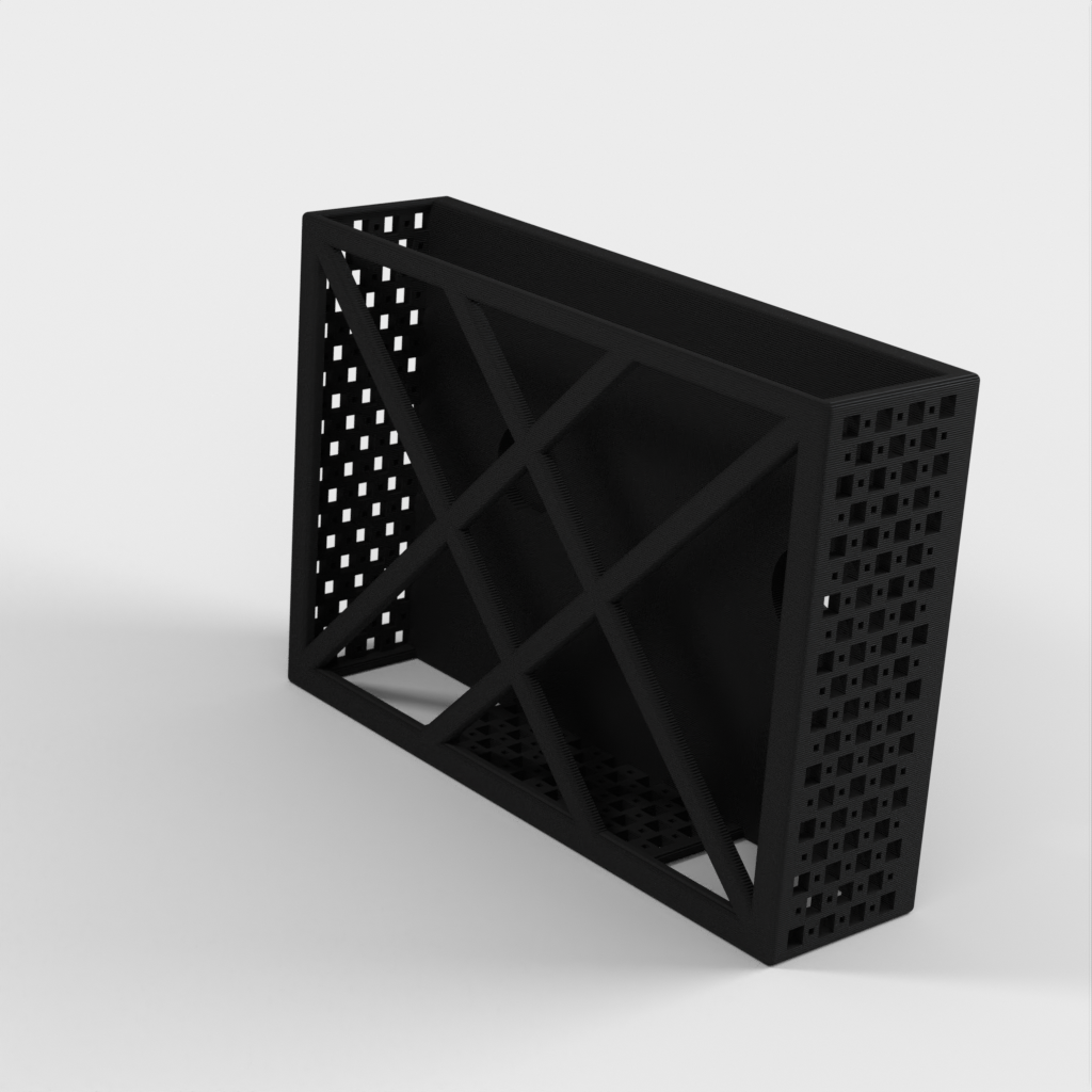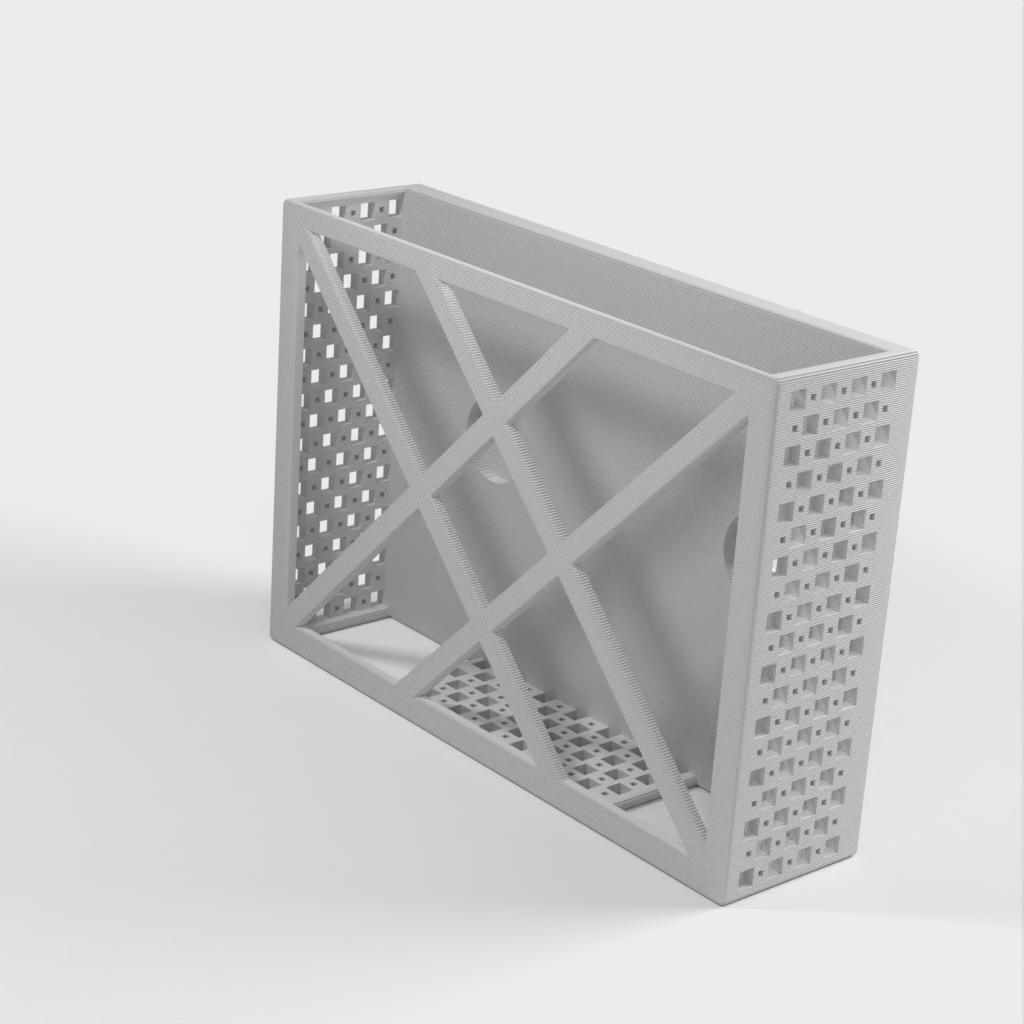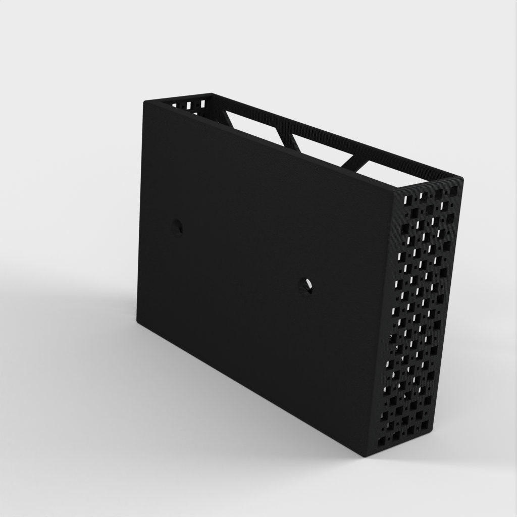 Uchwyt ścienny stworzony specjalnie dla Ubiquiti EdgeRouter X jest przeznaczony do korzystania z POE na eth0. Otwory po bokach zapewniają cyrkulację powietrza i zapobiegają przegrzaniu. W zestawie znajdują się dodatkowe pokrętła, które pomagają utrzymać EdgeRouter X na miejscu, a także otwory z tyłu umożliwiające dostęp do zasilania, uziemienia i resetowania. Krawędzie są przycięte i wypełnione, co zapewnia lepszą obsługę i ładniejszy wygląd.