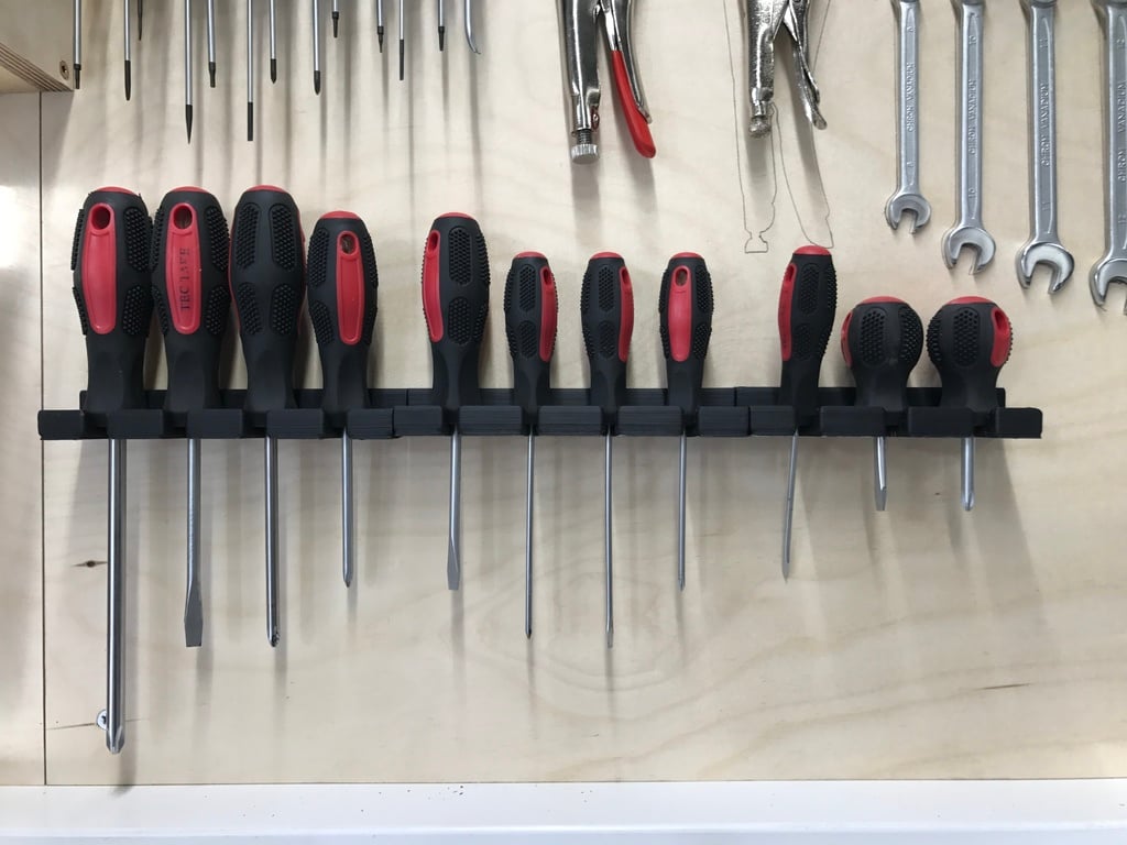 Uchwyt na śrubokręt to najlepsze rozwiązanie do organizowania i utrzymywania porządku w śrubokrętach. Łatwe przechowywanie śrubokrętów sprawia, że są one łatwo dostępne, gdy ich potrzebujesz. Uchwyt można regulować w razie potrzeby za pomocą dołączonego linku Onshape, dzięki czemu idealnie nadaje się zarówno do prywatnych warsztatów, jak i profesjonalnych miejsc pracy.