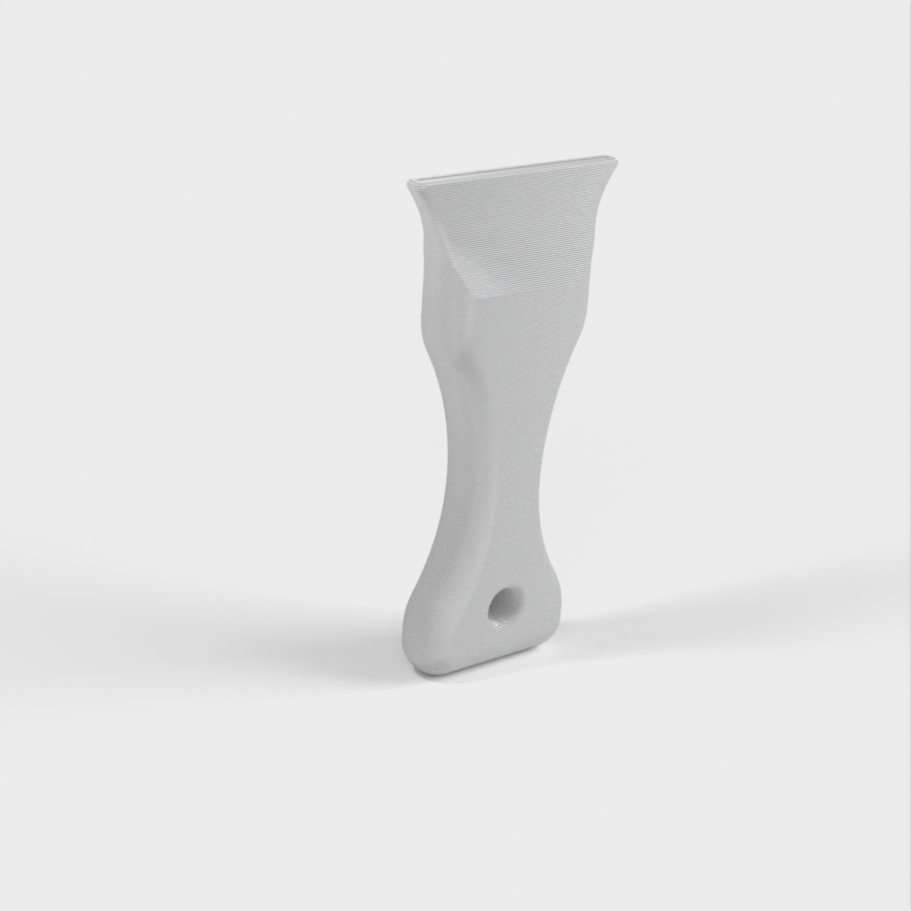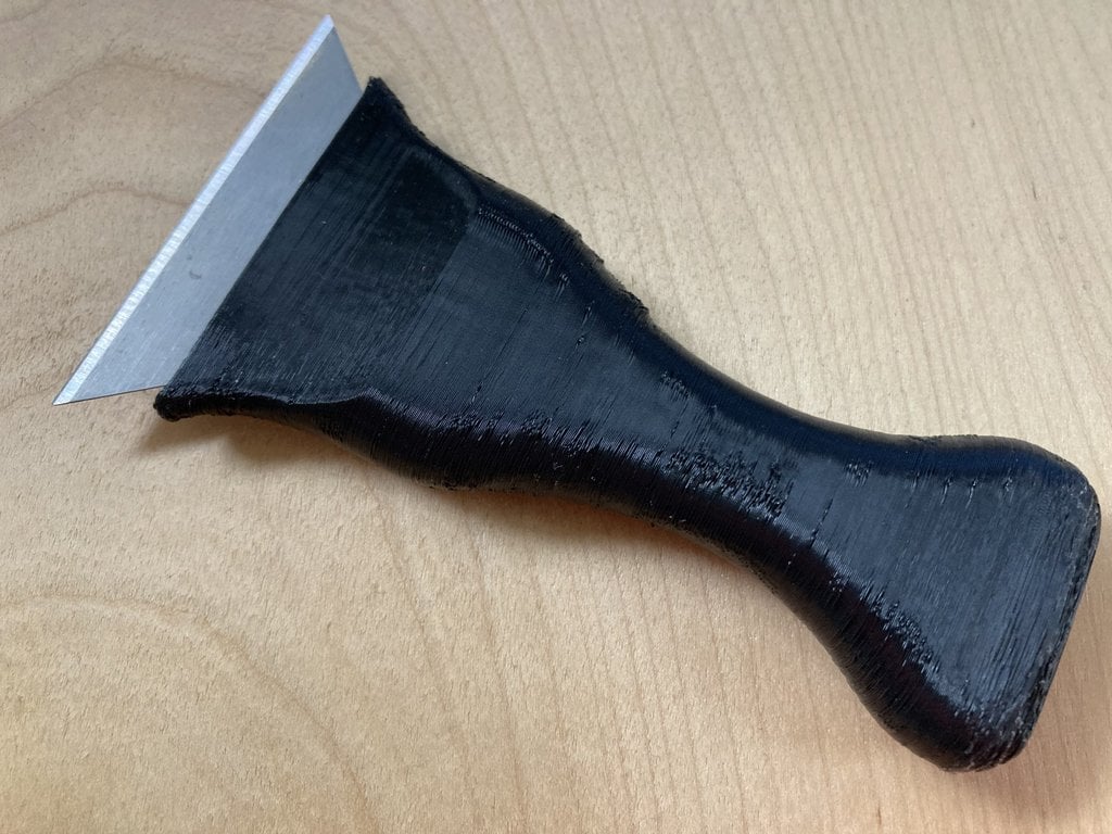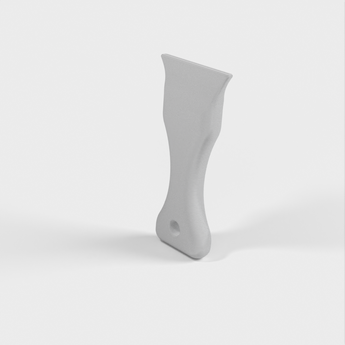 Rękojeść z żyletką, która jest wytrzymała i skuteczna w czyszczeniu pozostałości starego kleju ze szklanego łoża drukarki 3D. Pomaga również usunąć uporczywe wydruki ze szklanego łoża. Wystarczy wcisnąć żyletkę w uchwyt, aby się przykleiła. Zarówno ostre, jak i uporczywe wydruki można łatwo usunąć, dociskając uchwyt do szklanego łoża lub delikatnie stukając w szeroki koniec uchwytu, aby uwolnić wydruk ze szklanego łoża. Uchwyt ma również wersję z otworem, dzięki czemu można go powiesić.