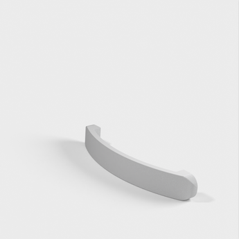Zestaw uchwytów do szafek kuchennych obejmuje cztery różne modele: uchwyt koszowy z odległością między środkami otworów 128 mm, gałkę koszową z jednym otworem, dwie proste gałki, każda z jednym otworem, oraz prosty uchwyt z trzema otworami - jednym pośrodku i dwoma po bokach, z odległością między środkami zewnętrznych otworów 128 mm. Do montażu należy włożyć nakrętki M4 w otwory i użyć śrub M4 przez drzwiczki meblowe.