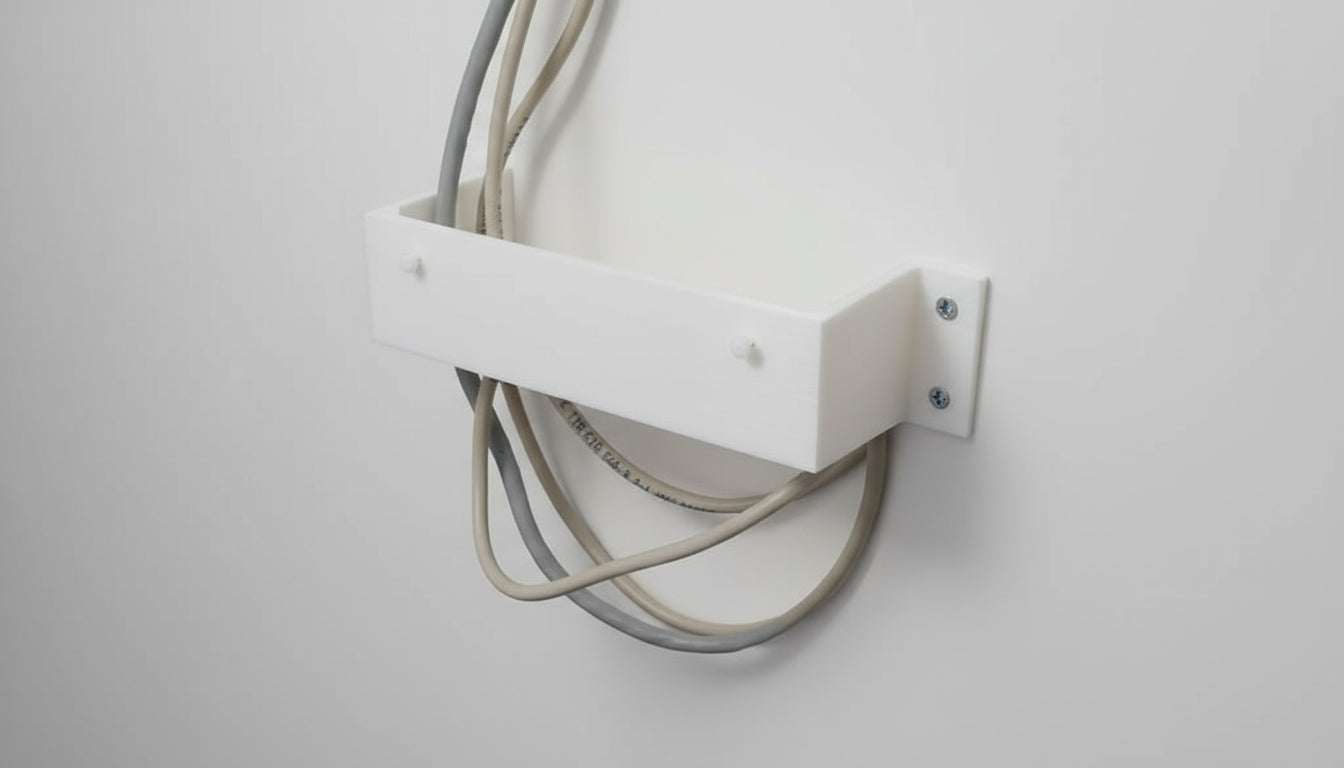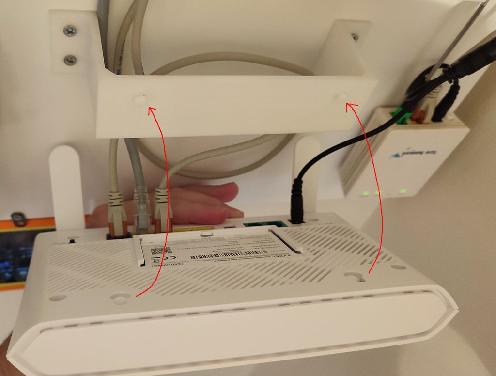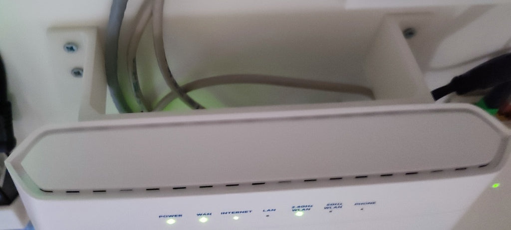 To jest adapter drukowany w 3D do montażu modemu Zyxel EX3301-T0 na ścianie. Adapter zapewnia wystarczająco dużo miejsca (5,5 cm) między modemem a ścianą, aby wykonać wszystkie połączenia kablowe z tyłu.