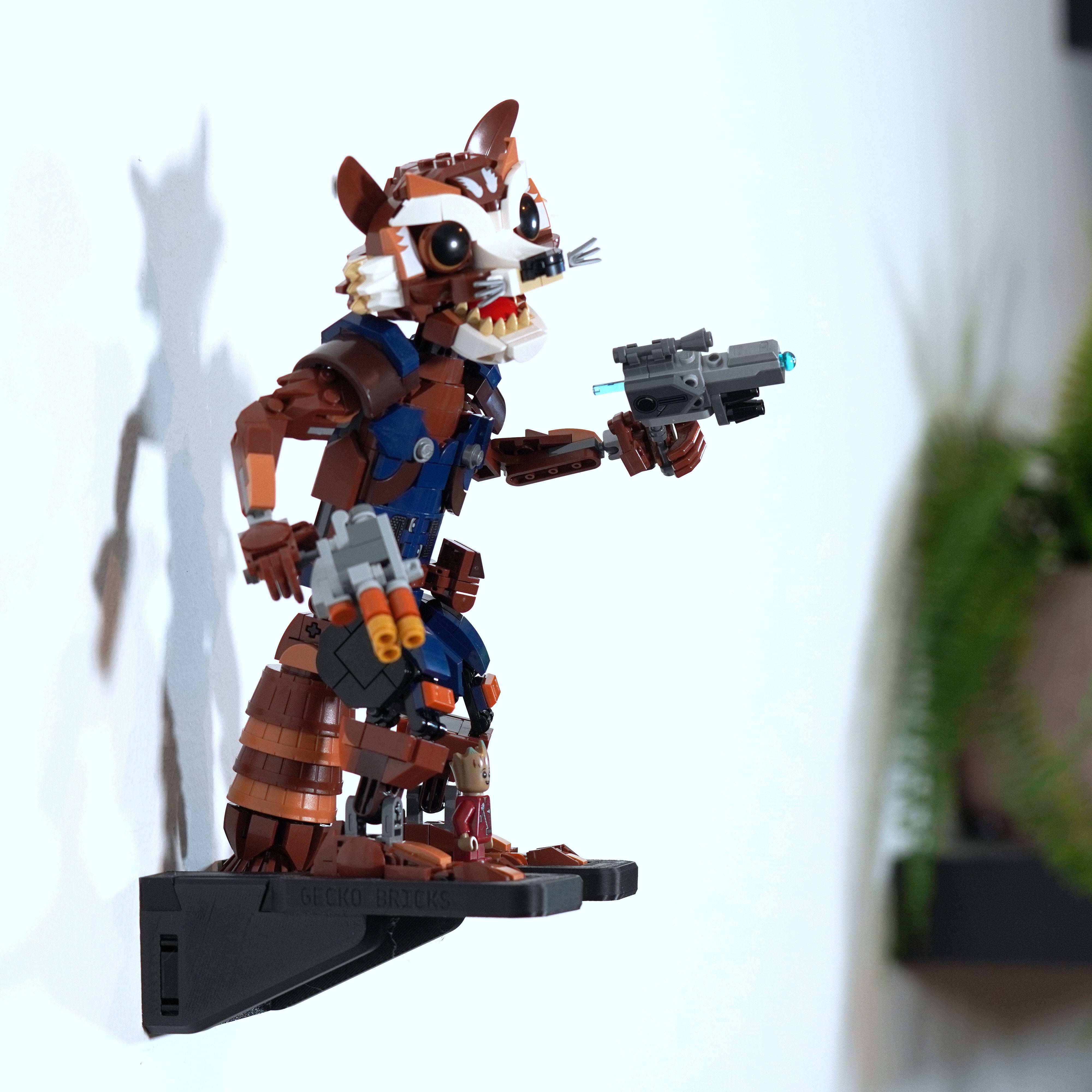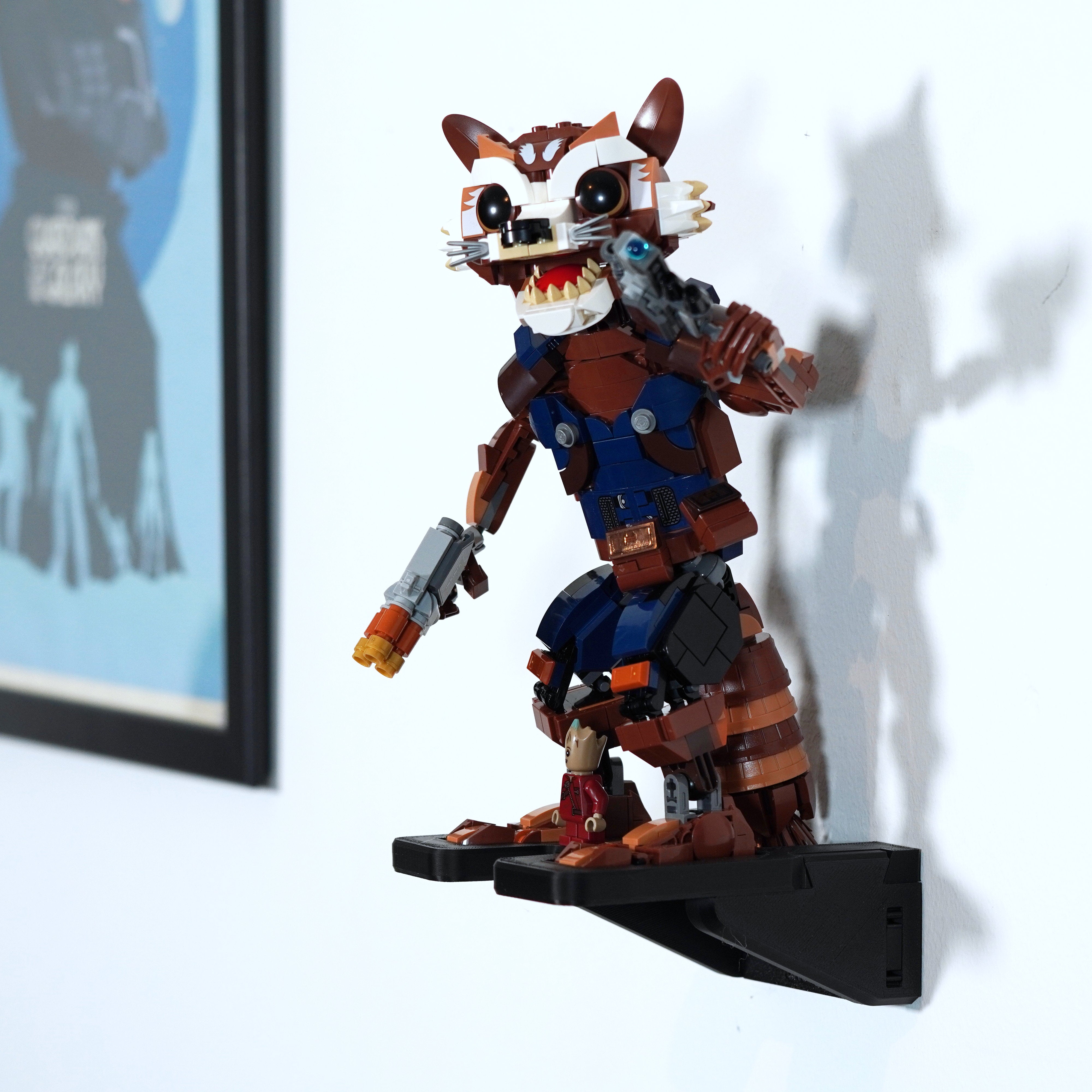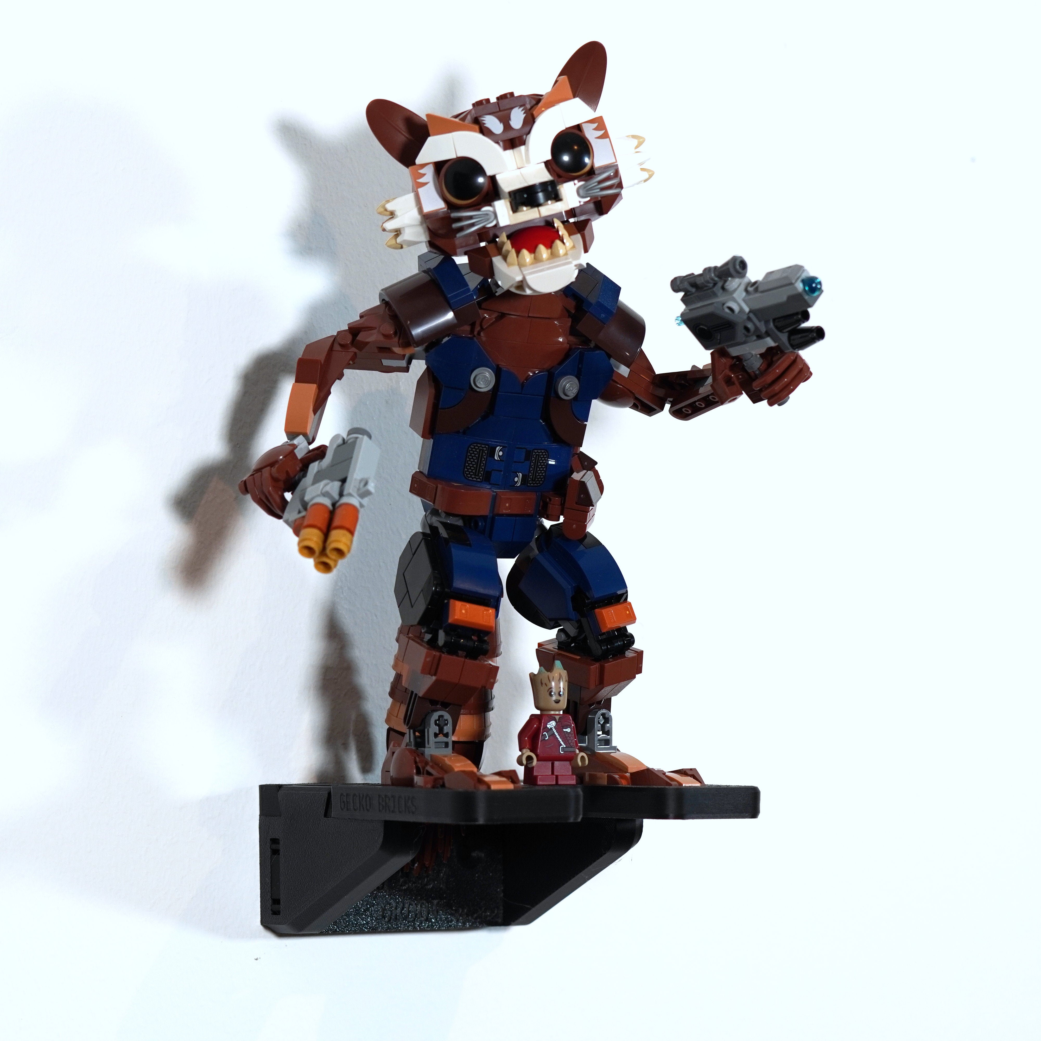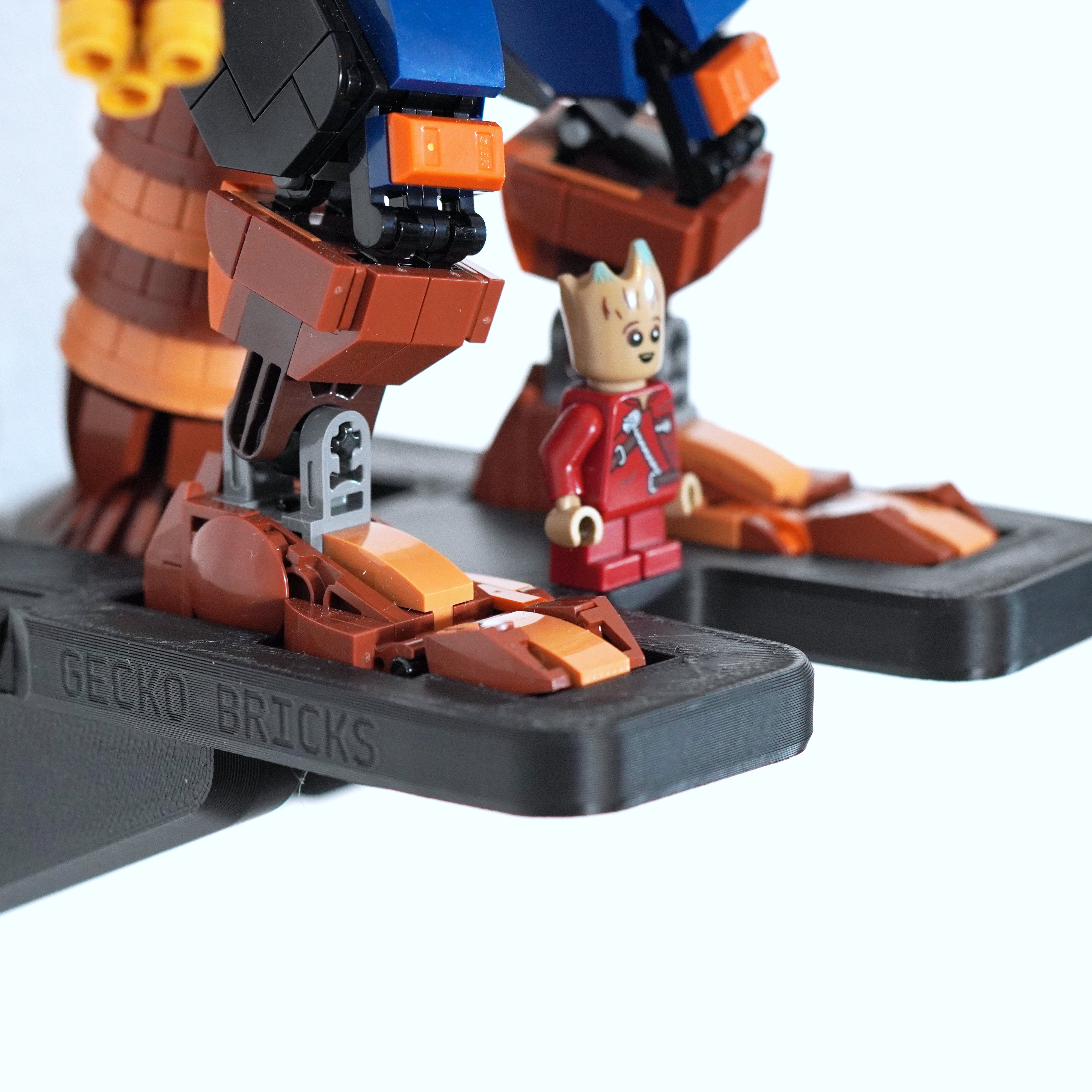- Specjalnie zaprojektowany wieszak ścienny do zestawu Marvel Rocket i Baby Groot (zestaw 76282).