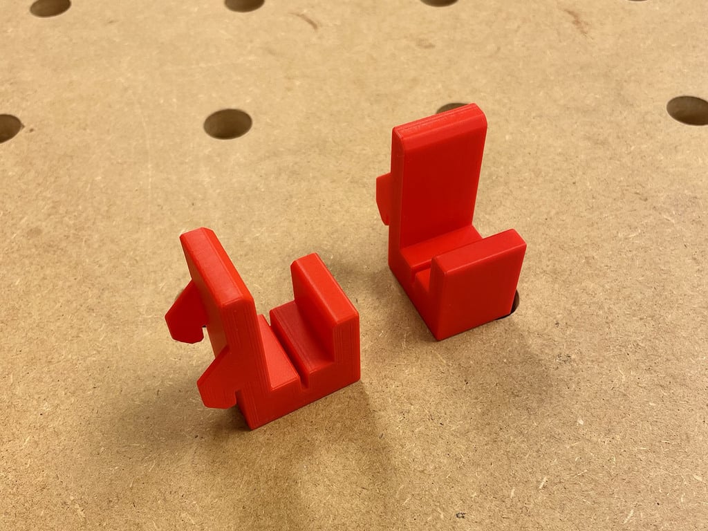 Uchwyt jest skonstruowany ze skośnym otworem, który precyzyjnie pasuje do kształtu kwadratu stalowego, zapewniając optymalne dopasowanie niezależnie od sposobu zawieszenia. Zmodyfikowane tylne wypustki na zawieszeniu są szersze i mają lekkie zwężenie, co gwarantuje stabilny i szczelny montaż na tablicy perforowanej, dzięki czemu kwadraty są bezpiecznie utrzymywane na miejscu.