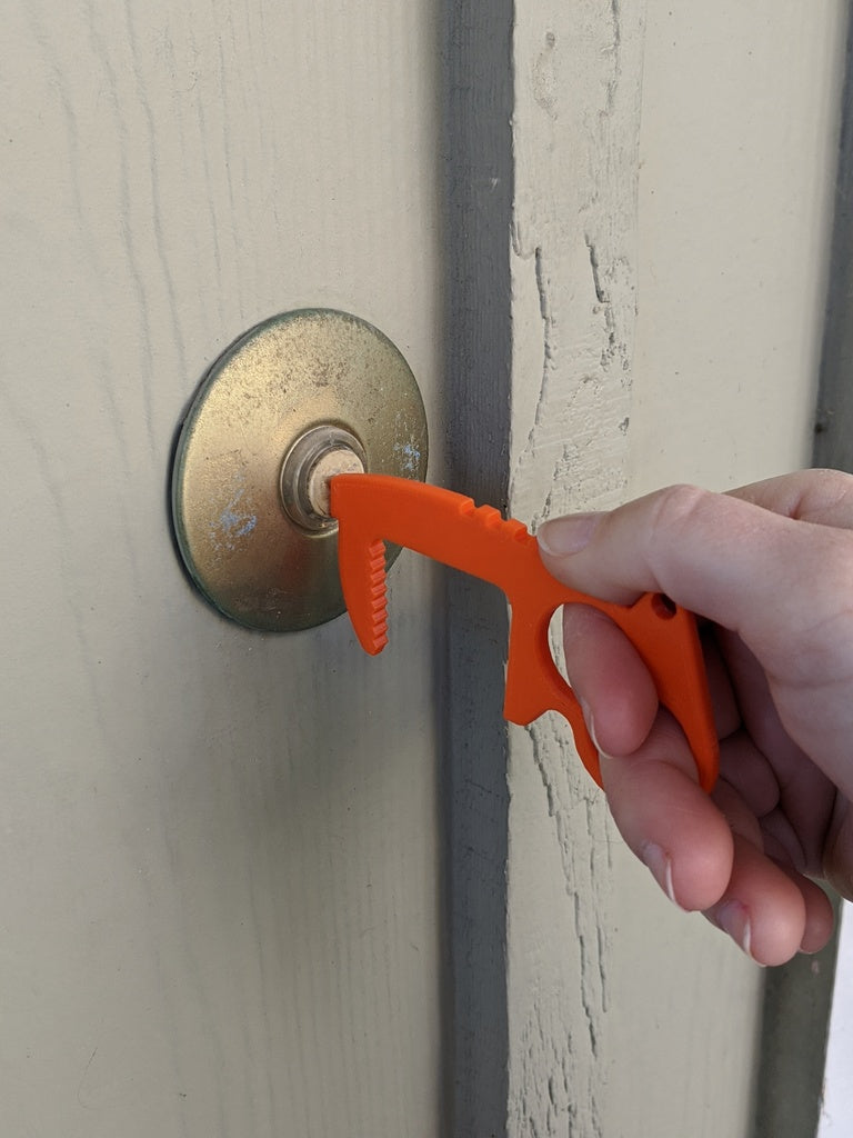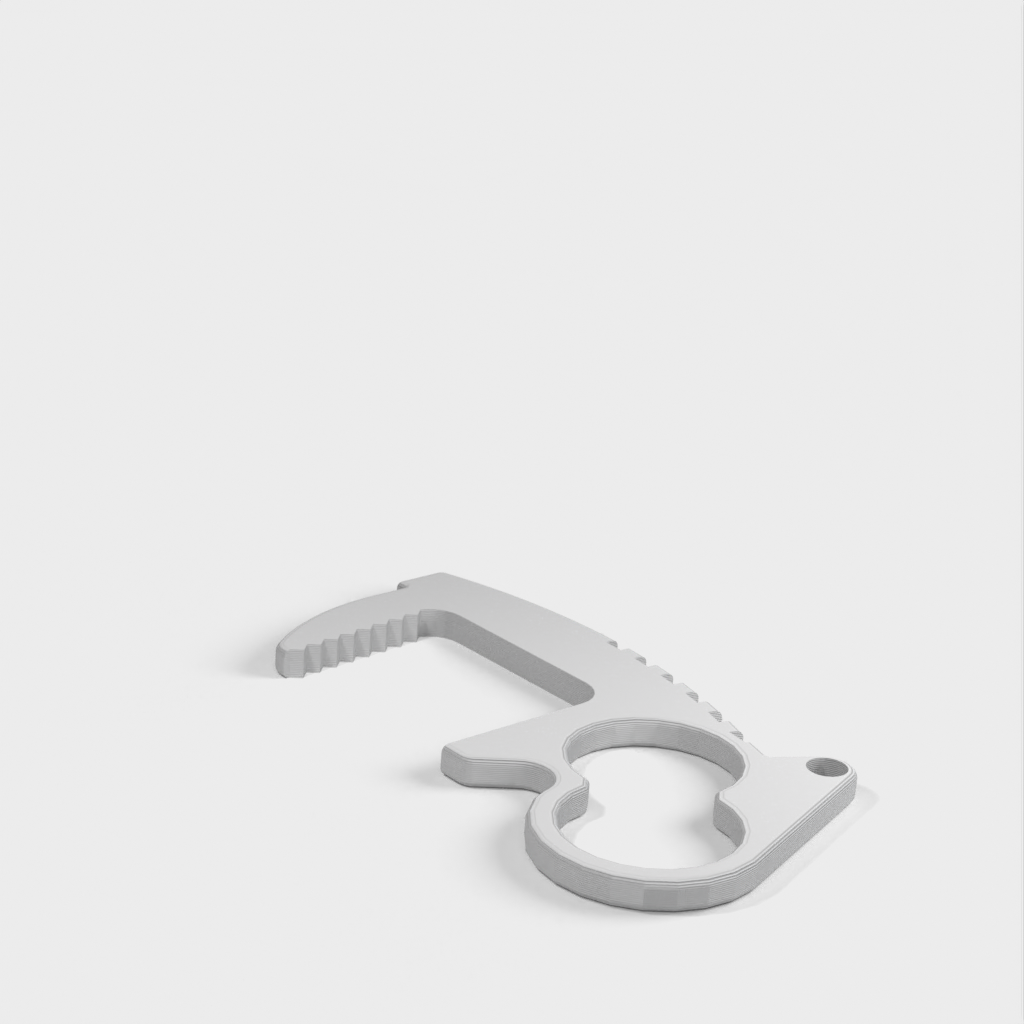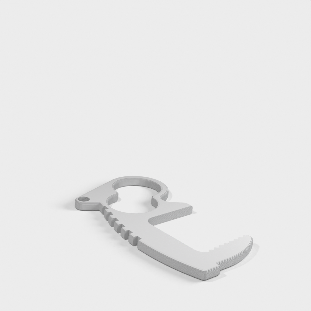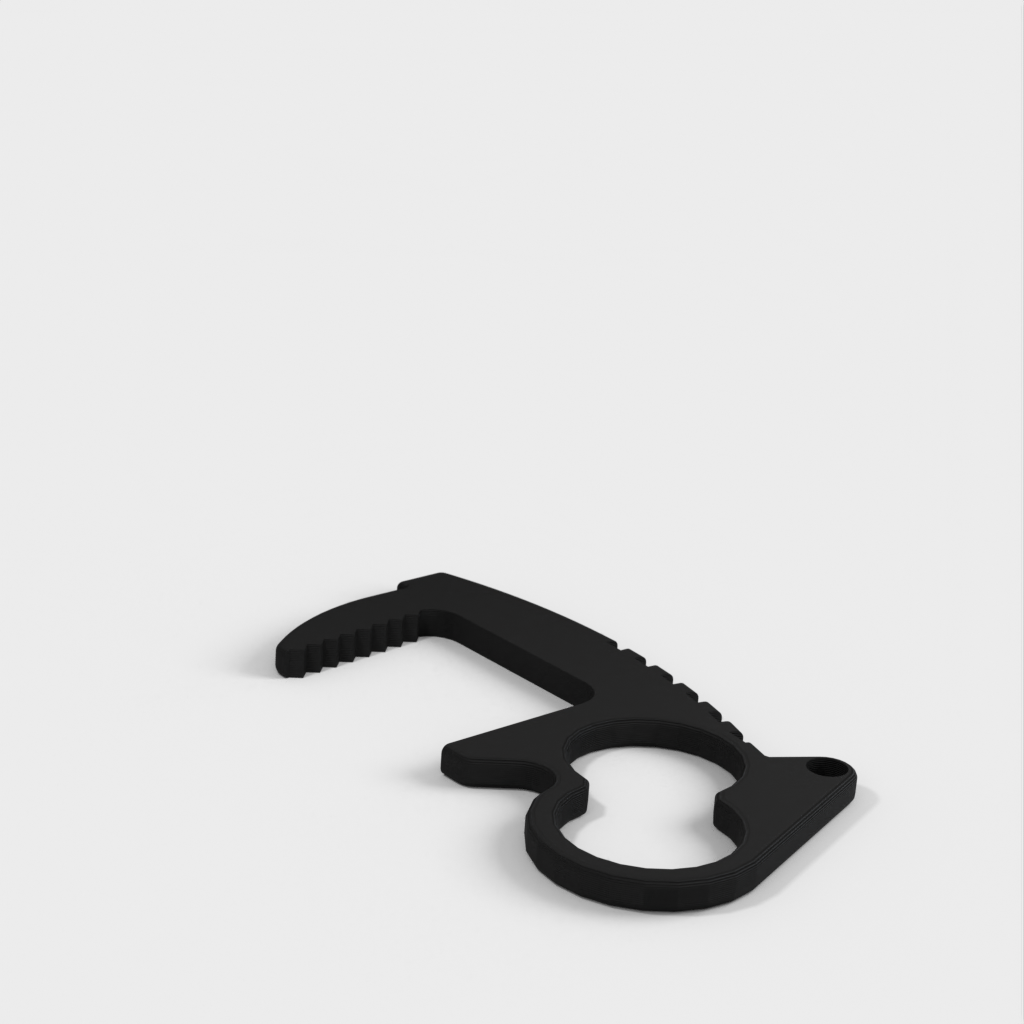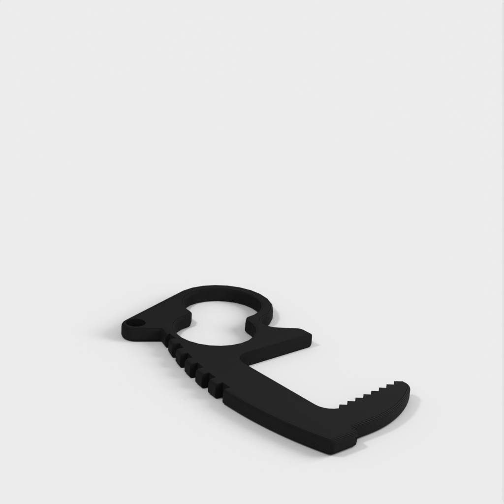 Unikaj bezpośredniego kontaktu z klamkami, przełącznikami, klawiaturami i wieloma innymi przedmiotami dzięki temu bezdotykowemu brelokowi do otwierania drzwi. Unikalna konstrukcja z dwoma otworami pozwala na cztery różne style chwytania. Górne uchwyty i dźwignie kciukowe zapewniają większą dźwignię niż inne konstrukcje, podczas gdy wewnętrzna powierzchnia zębów zapewnia niezbędne tarcie. Każdy otwieracz waży zaledwie 4 gramy, dzięki czemu idealnie nadaje się do breloków do kluczy, kieszeni, toreb na laptopa, bez zauważalnej różnicy w wadze. Rozmieszczenie otworów w breloczku zostało zaprojektowane tak, aby bezpiecznie trzymać klucze w dłoni i zapewnić zwiększoną dźwignię. Działa również dobrze na końcu smyczy.