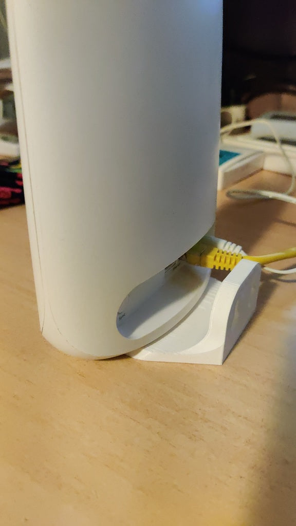 Prosty uchwyt ścienny do następującego urządzenia Netgear Orbi AX1800, schowany pod routerem.