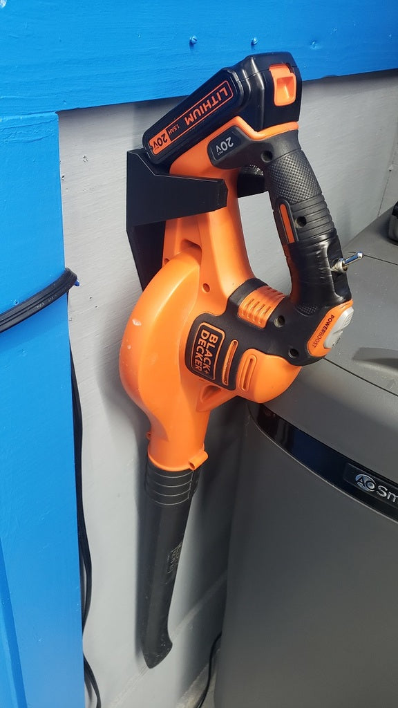 Prosty uchwyt ścienny do dmuchawy Black & Decker 20 V, którą można umieścić na ścianie. Ten praktyczny system przechowywania oszczędza miejsce w miejscu pracy, a jednocześnie zapewnia uporządkowanie i łatwy dostęp do dmuchawy.