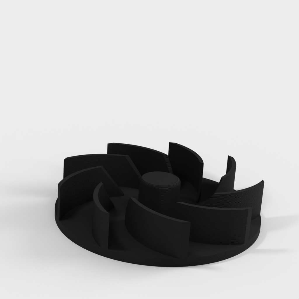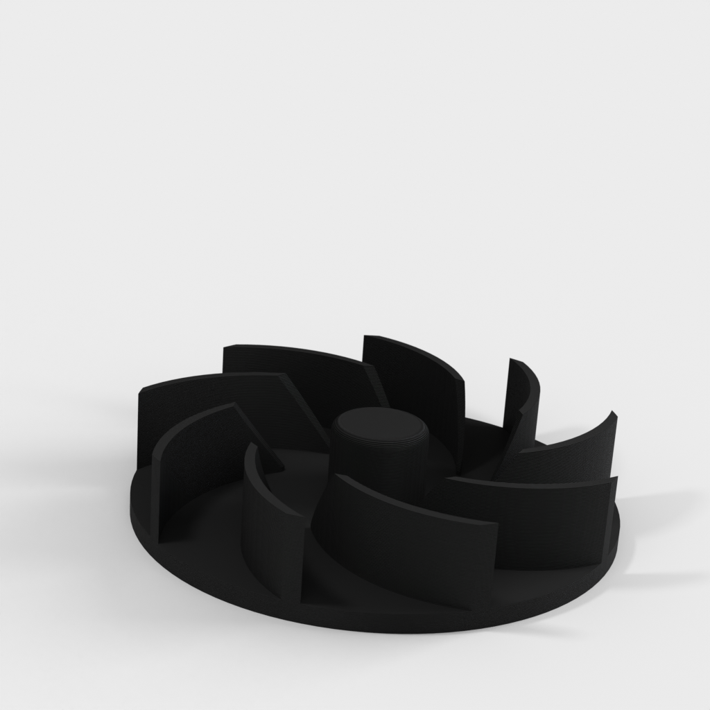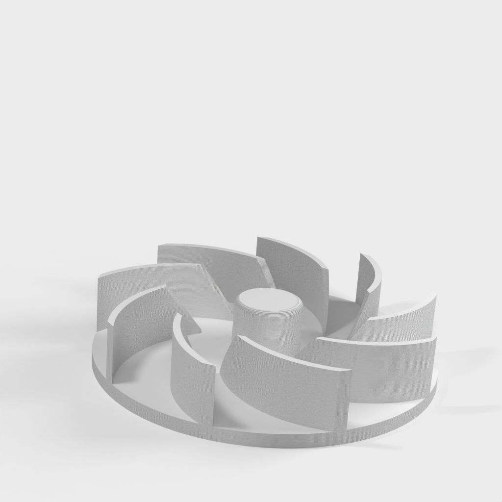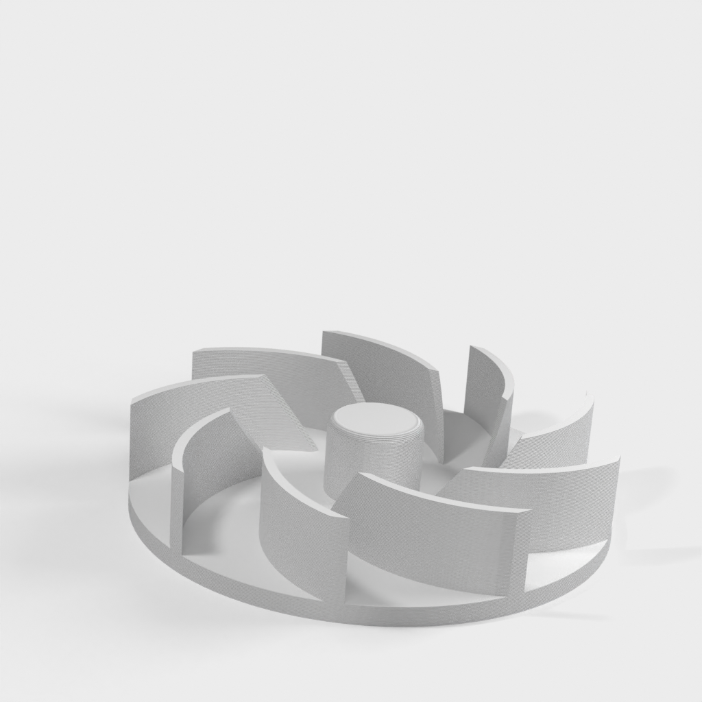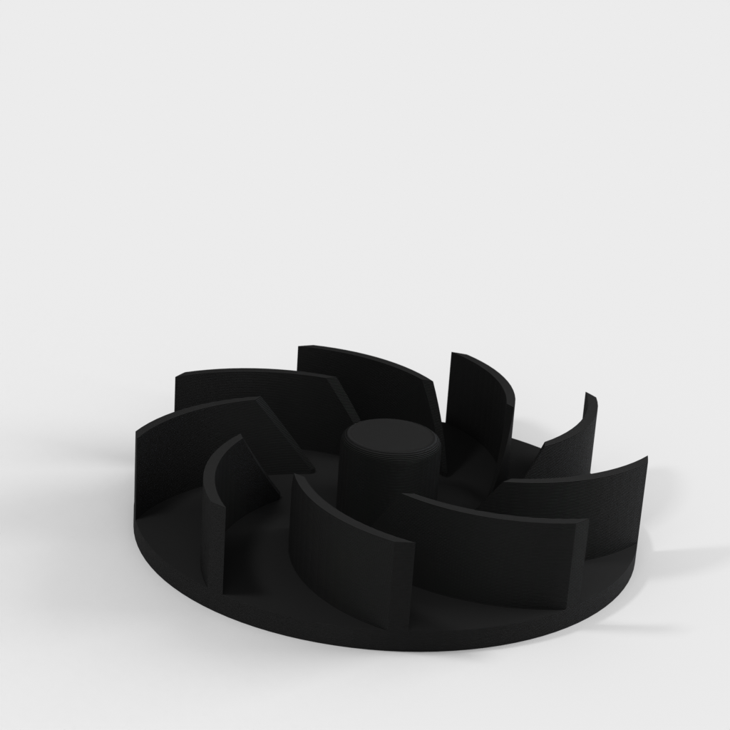 Rotor zamienny do dmuchawy do liści Ryobi RBL1802. Dwuczęściowa konstrukcja ułatwia wymianę uszkodzonego wirnika i zapewnia optymalne działanie narzędzia. Do montażu na wale silnika zaleca się użycie niewielkiej ilości taśmy teflonowej i podkładki włóknistej, aby zapewnić odpowiednią odległość od silnika i zapewnić dokładne dopasowanie.