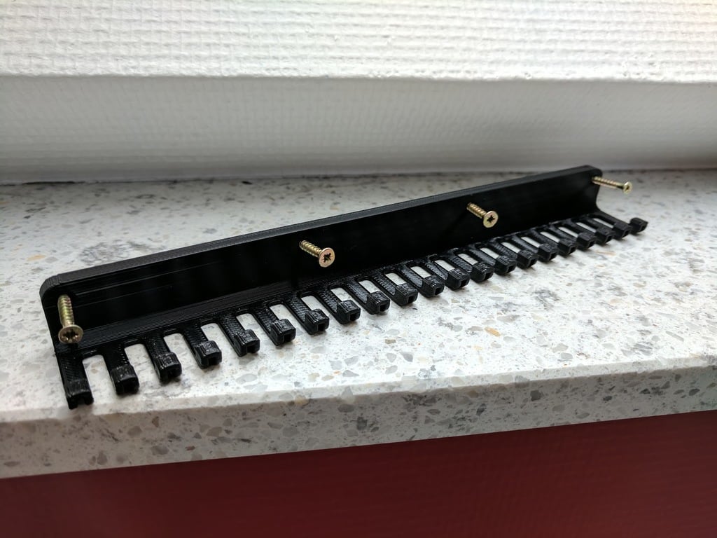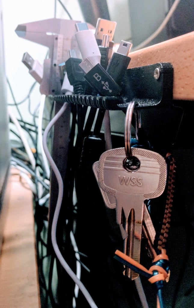 Uchwyt na kable do biurka. Uchwyt do zarządzania kablami umożliwia łatwą organizację i ukrywanie przewodów, zapewniając bardziej uporządkowane stanowisko pracy. Pomaga utrzymać porządek na biurku i poprawia wydajność.